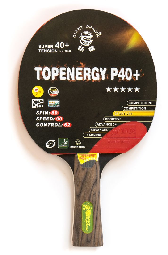 Ракетка для настольного тенниса с конической рукояткой Dragon Topenergy 5 Star New соответствует высокому современному стандарту качества, имеет обновленный дизайн, а также улучшенные технологические и игровые характеристики.