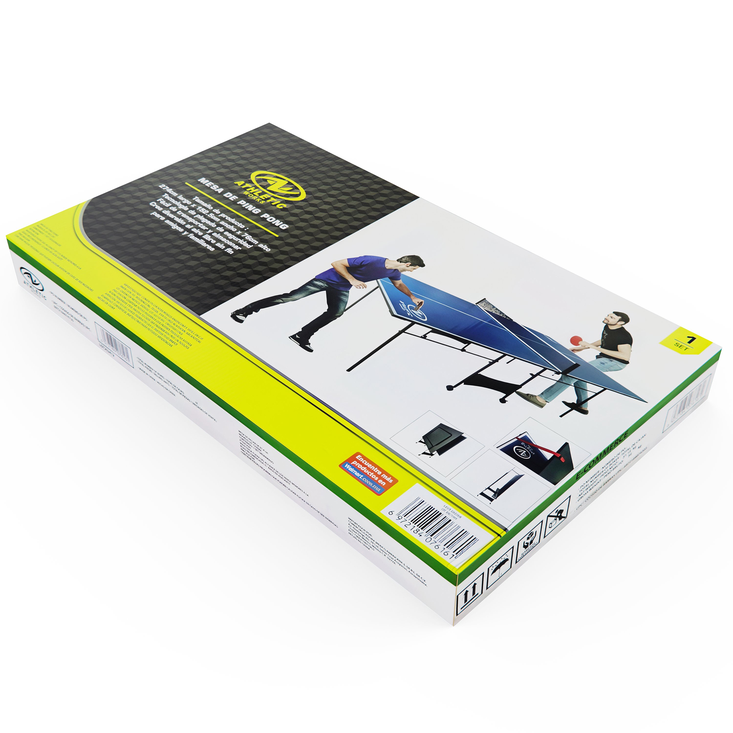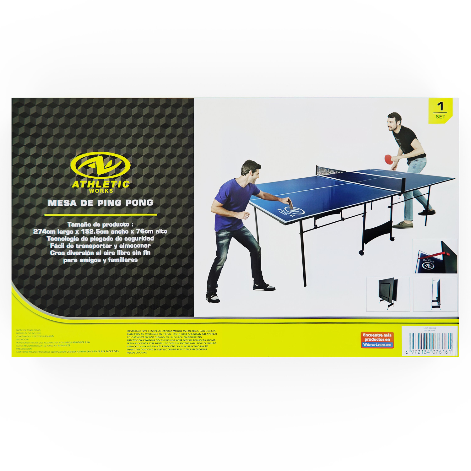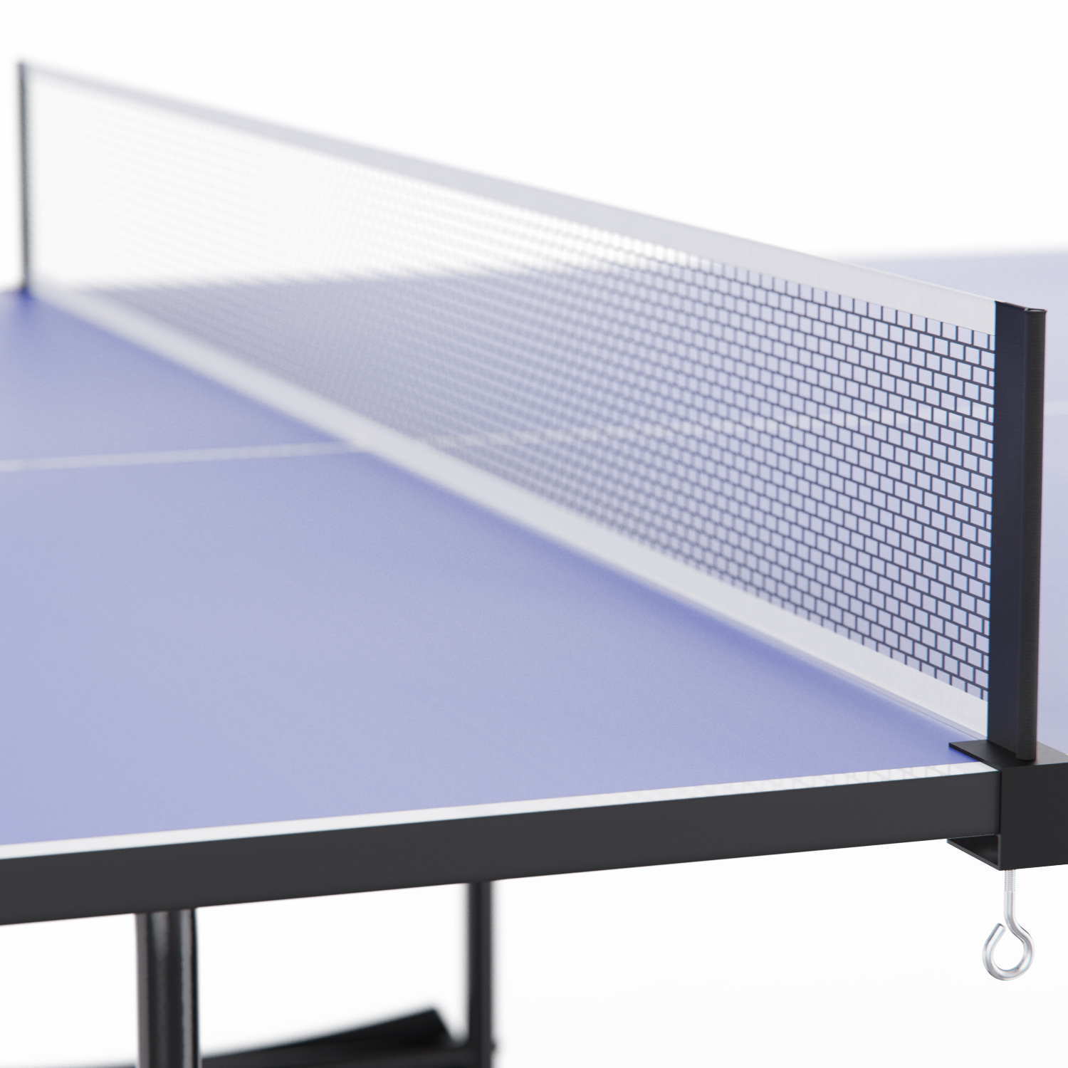 Размеры стола в разложенном виде составляют 274,3 х 152,4 х 76 см. Столешница выполнена из 15 мм ДСП, а покрытие обеспечивает оптимальный отскок мяча и долгий срок службы. Сетка в комплекте.