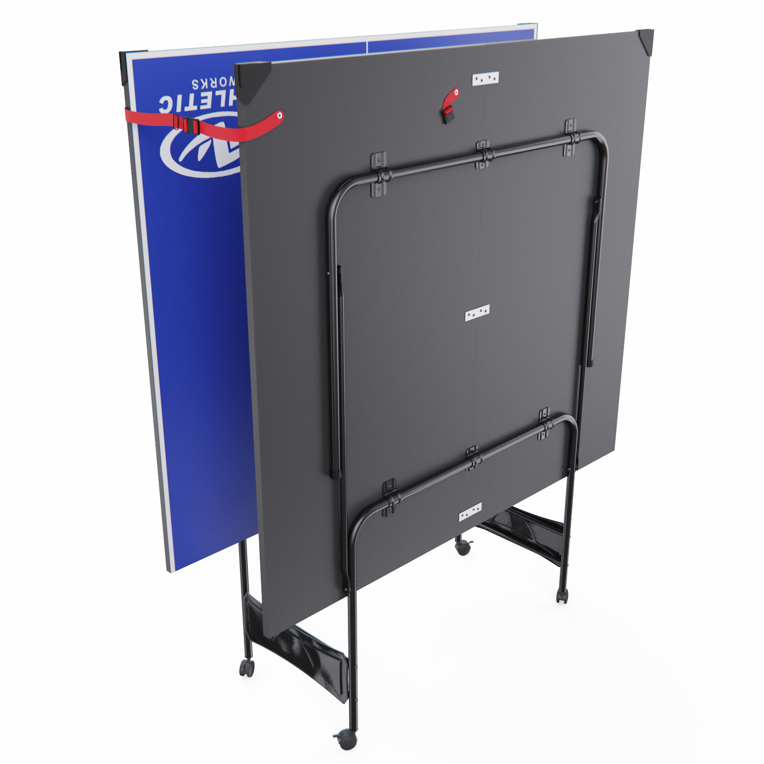 Модель складная, и в сложенном виде имеет компактные размеры 66 х 152 х 186,5 см, что делает её удобной для хранения даже в квартире. Встроенные транспортировочные ролики позволяют легко перемещать стол по комнате без лишних усилий.