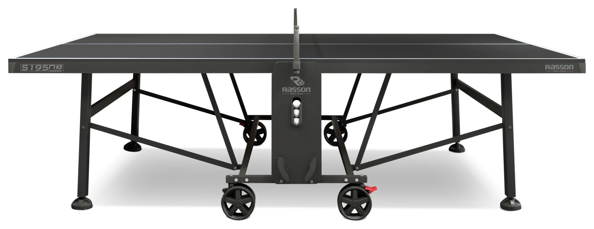 "Rasson Premium S-1950 Indoor" это складной стол для настольного тенниса на металлической основе, который имеет конструкцию, оснащенную большими колесами с фиксаторами. В стальной раме используется квадратная металлическая труба 30x30 мм, а в ножке стола используется конструкция из круглой металлической трубы 40х60 мм.