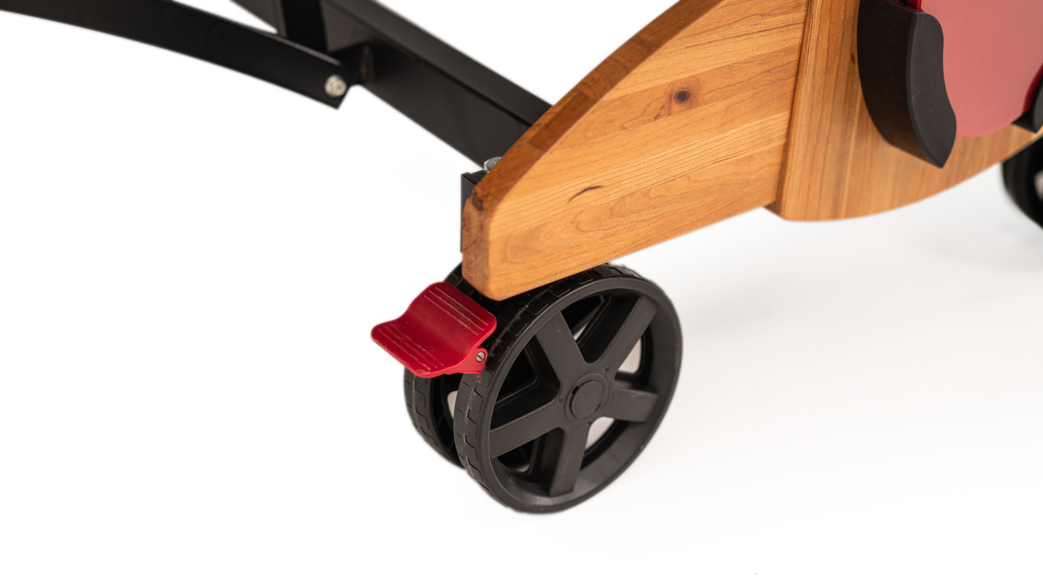 Модель имеет четыре двойных колеса 160 мм с системой блокировки, которая задает жесткую фиксацию нужного положения во время игры.