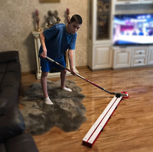 Тренажер включает в себя шайбу официального стандарта, направляющие движения шайбы и устройство движения шайбы под нагрузкой с регулятором степени нагрузки.