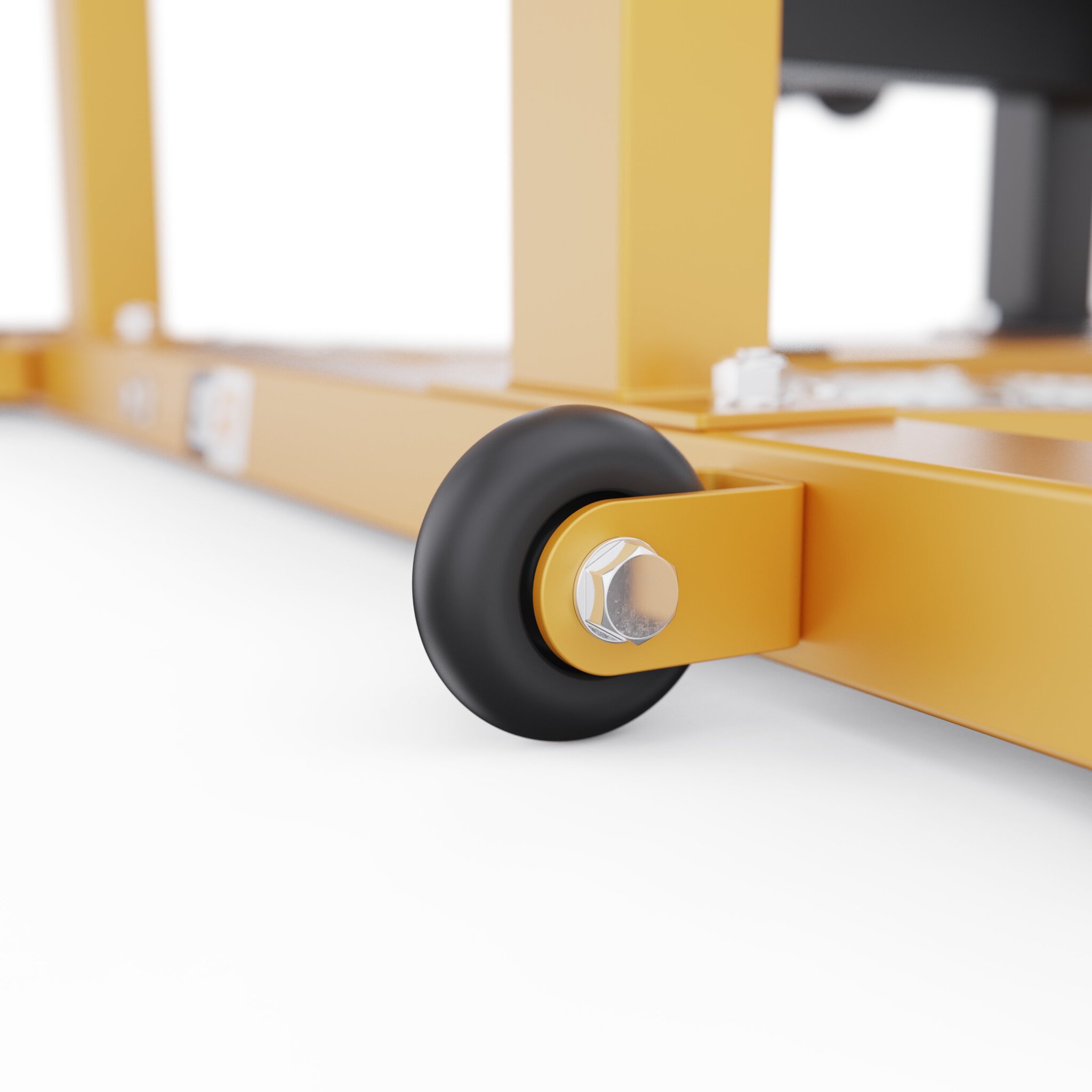 Конструкция выдерживает вес до 300 кг, а максимальная нагрузка на штангу до 200 кг. Каркас выполнен из прочной стали с профилем 70 х 50 х 2 мм, что обеспечивает высокую устойчивость даже при максимальной нагрузке. Размер тренажера в рабочем виде составляет 116,3 х 127,4 х 143,2 см, что делает его устойчивым и удобным для выполнения упражнений.