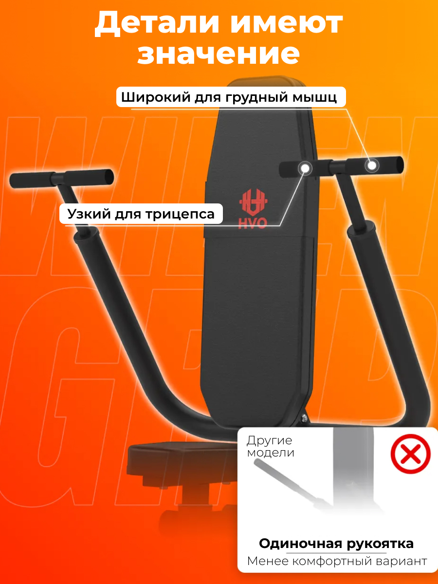 Конструкция продумана до мелочей: оптимальное расстояние между поручнями — 50,4 см, что обеспечивает удобный и естественный хват во время выполнения упражнений, а длина слайда составляет 105,5 см, благодаря чему движения получаются плавными, контролируемыми и полностью соответствуют правильной тренировочной амплитуде.