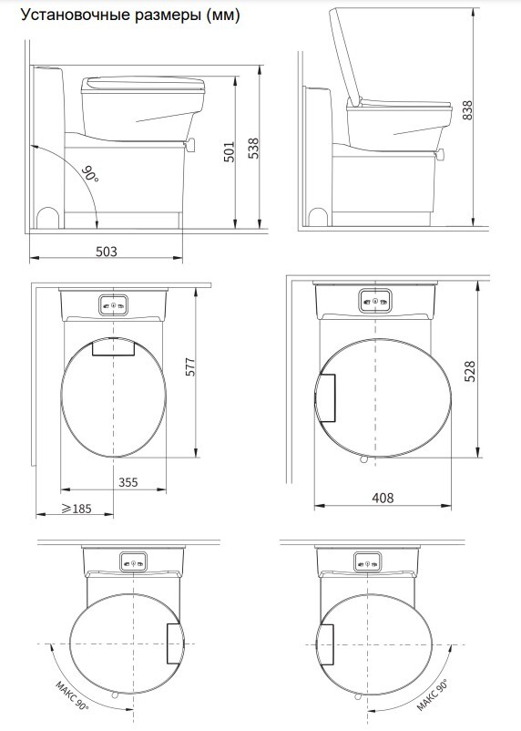 Сиденье и крышка унитаза изготовлены из антибактериального материала и обладают антибактериальной функцией. Крышка унитаза имеет магнитный механизм, который противодействует дребезжанию во время движения. А крышка унитаза имеет механизм замедления для снижения шума. Панель управления с индикацией заполнения кассеты для сточных вод.