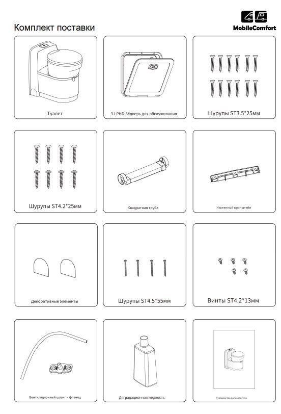 Унитаз MobileComfort MC-CTS может выдерживать максимальную нагрузку 125 кг. Данная модель по функционалу схожа с кассетным туалетом Dometic CTS-4110. В комплекте с внешним люком (люк, замок, личинка для замка, 2-а ключа).