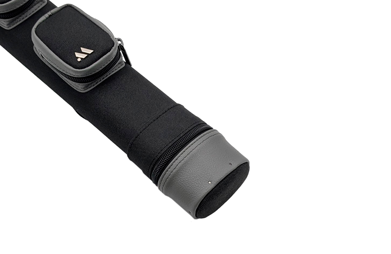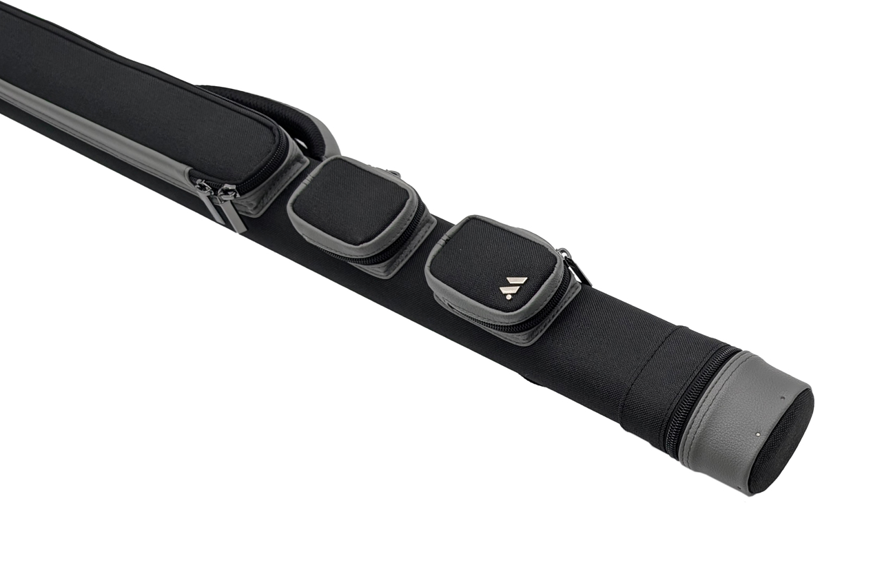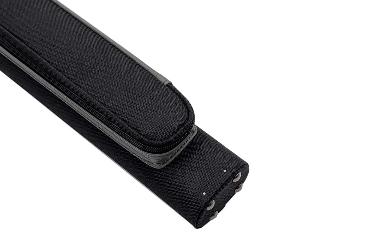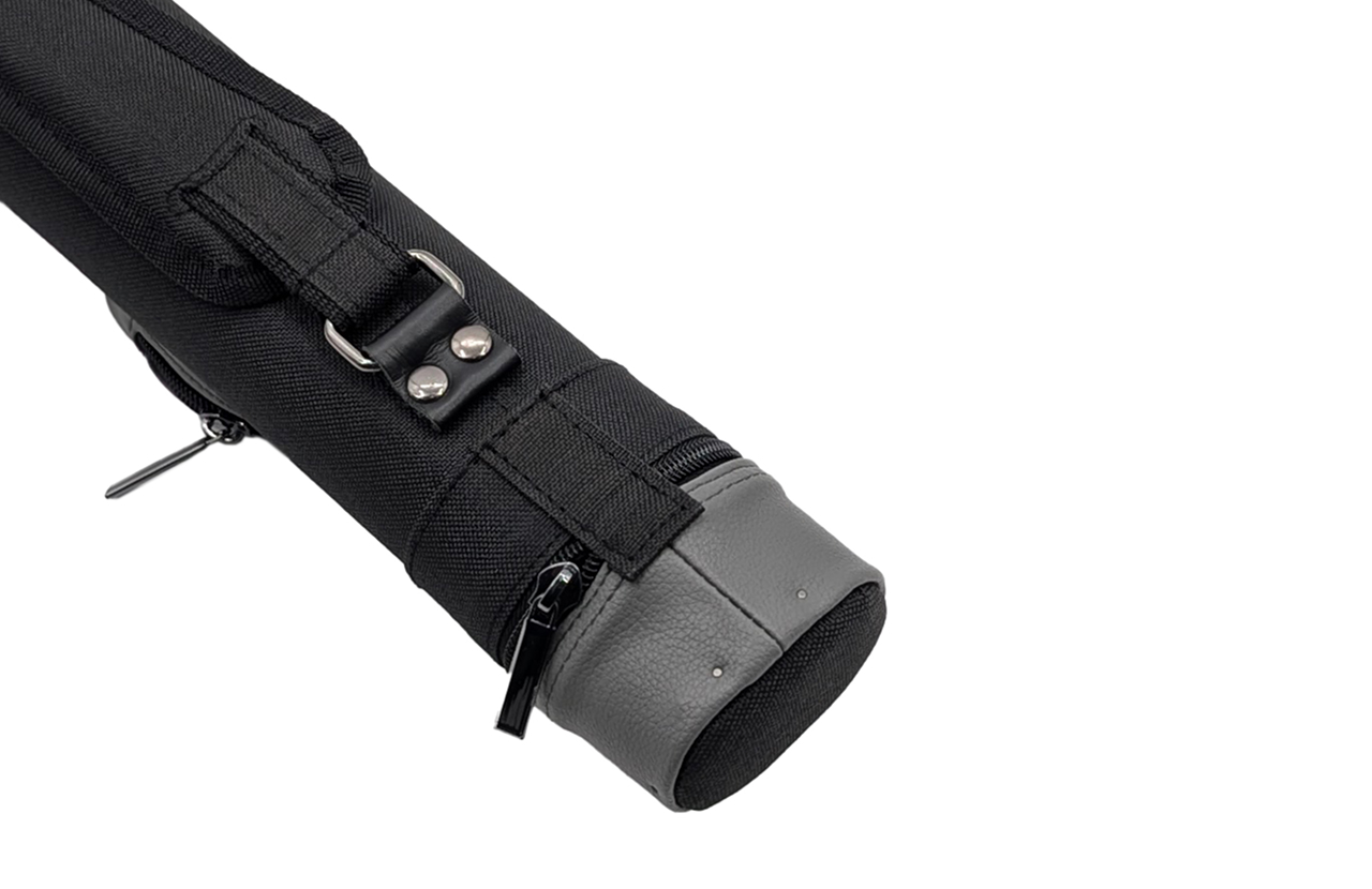 Есть ручка сбоку и наплечный ремень с регулировкой длины. На ремне есть специальная вставка для комфортной носки на плече. Каждая часть кия хранится в отдельном отсеке. С внешней стороны имеются карманы для аксессуаров и удлинителя.