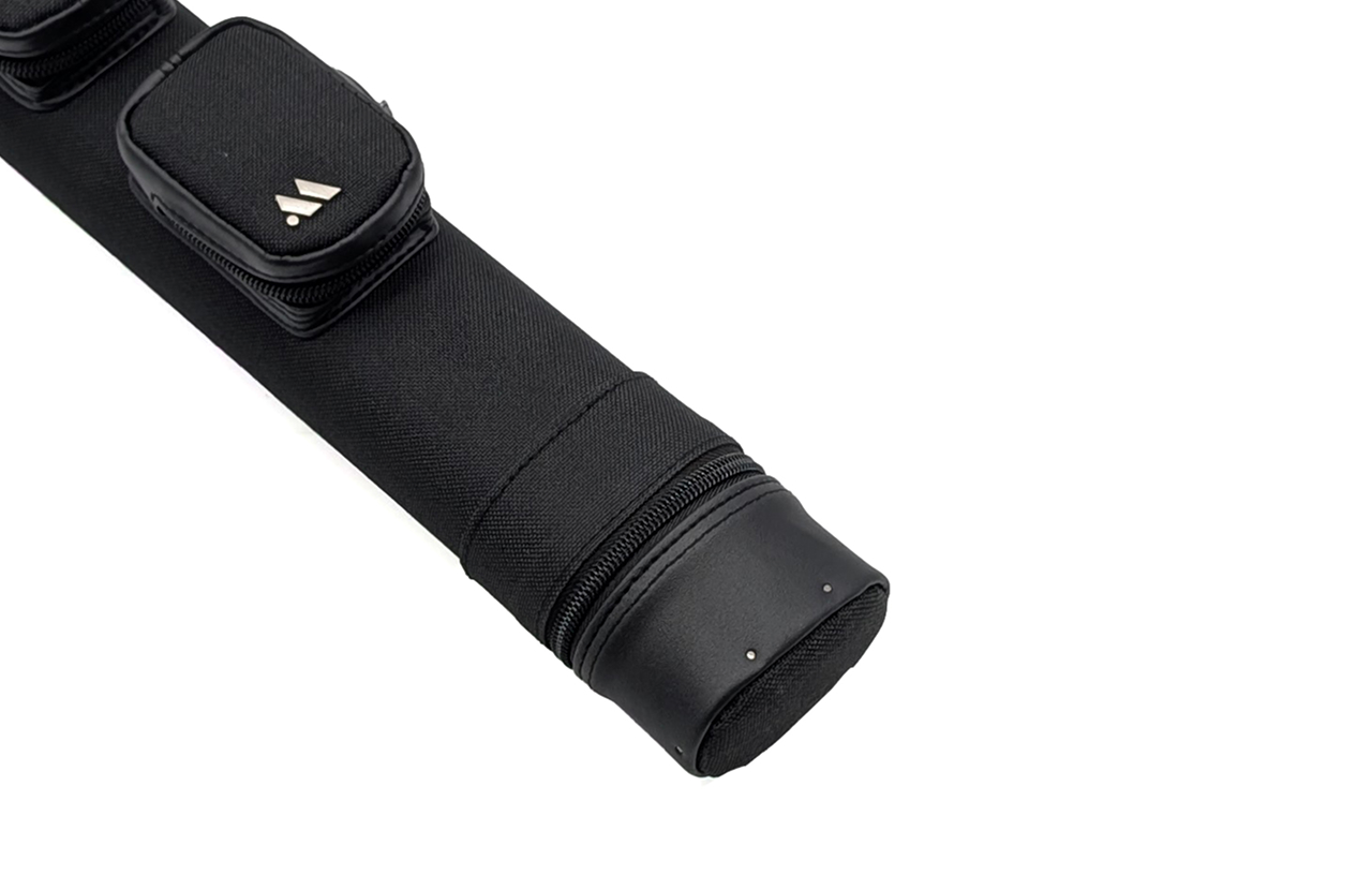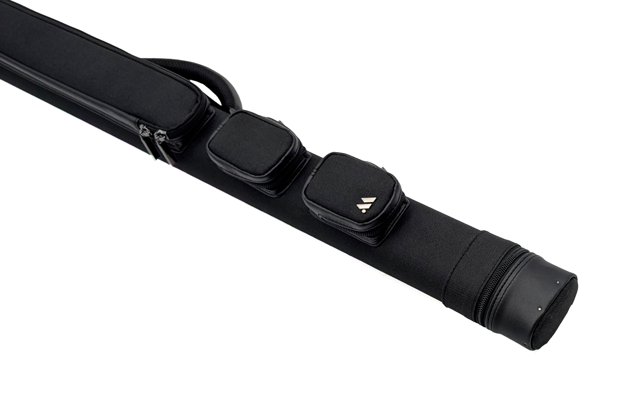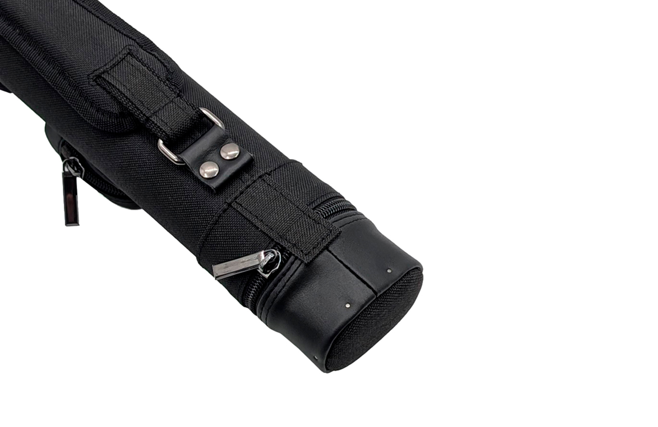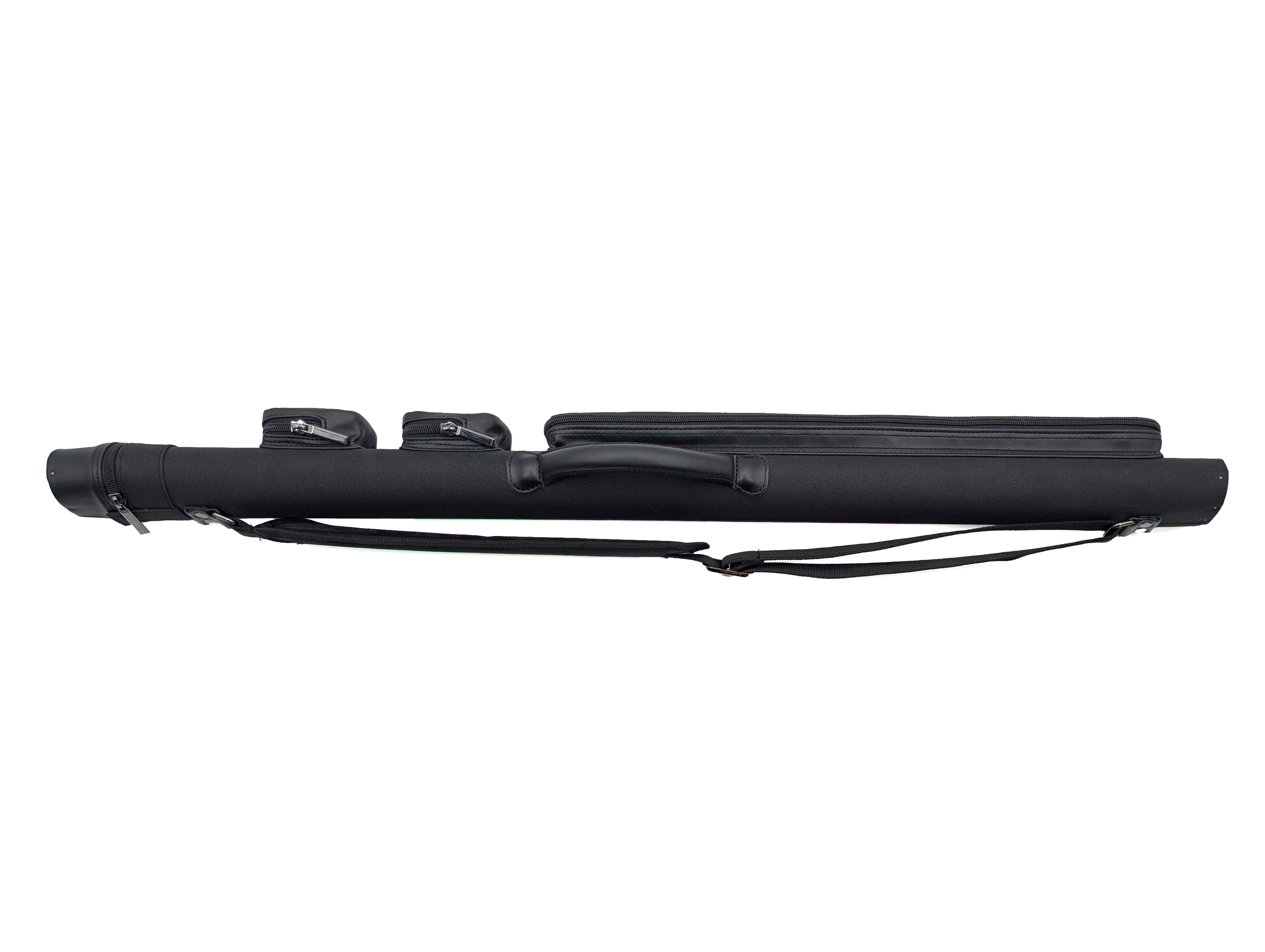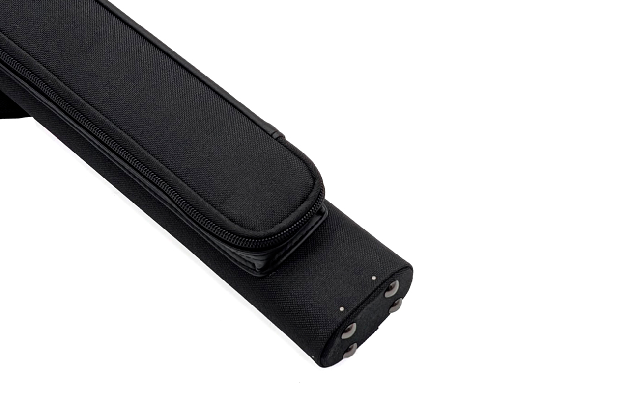 Есть ручка сбоку и наплечный ремень с регулировкой длины. На ремне есть специальная вставка для комфортной носки на плече. Каждая часть кия хранится в отдельном отсеке. С внешней стороны имеются карманы для аксессуаров и удлинителя.