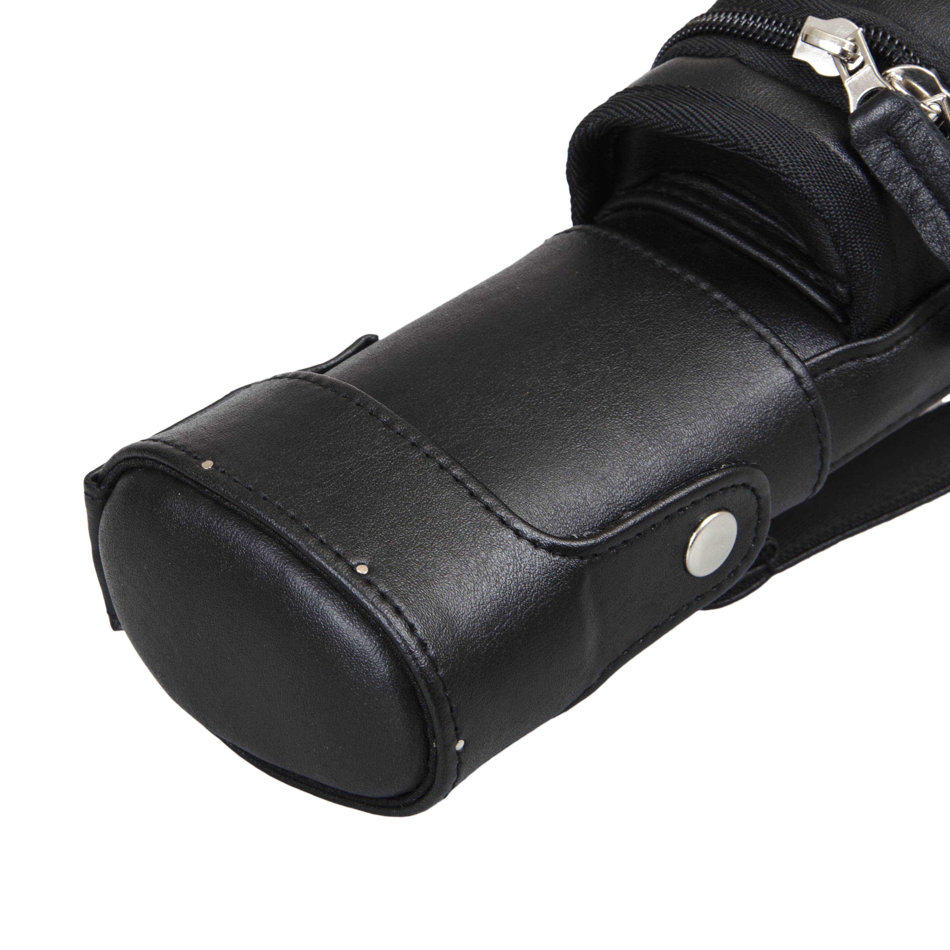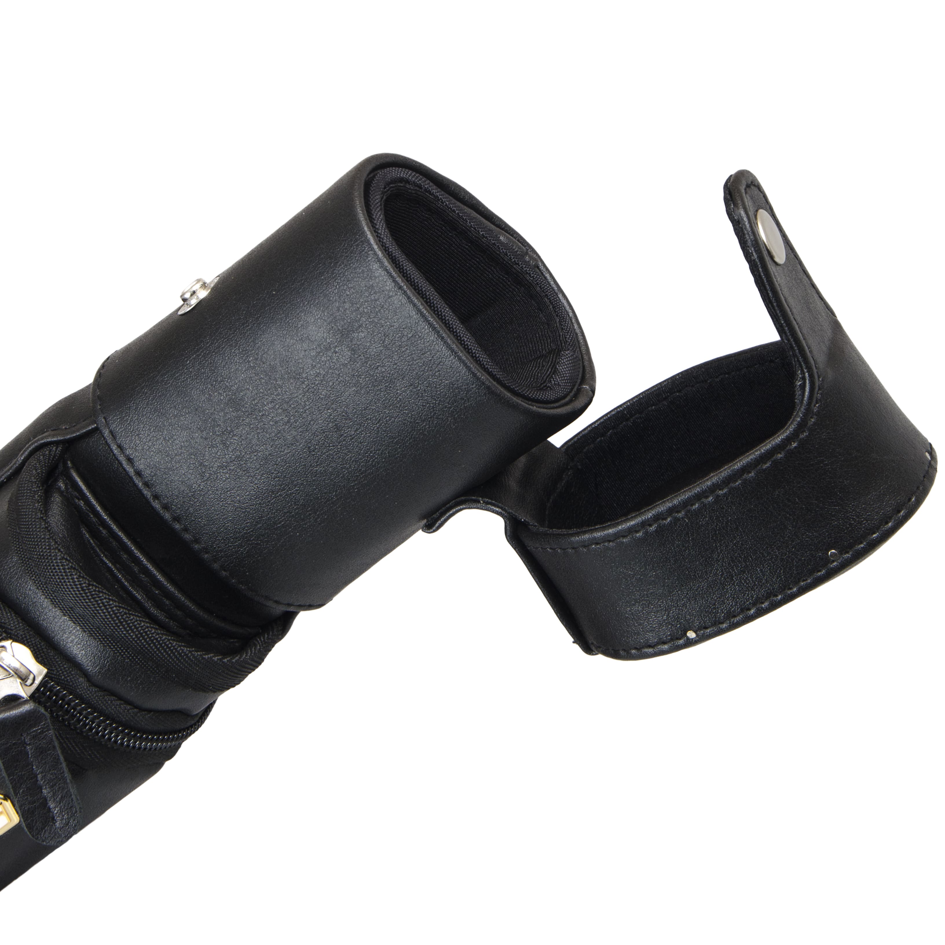 Каждая часть кия хранится в отдельном отсеке. С внешней стороны имеются карманы для аксессуаров и удлинителя