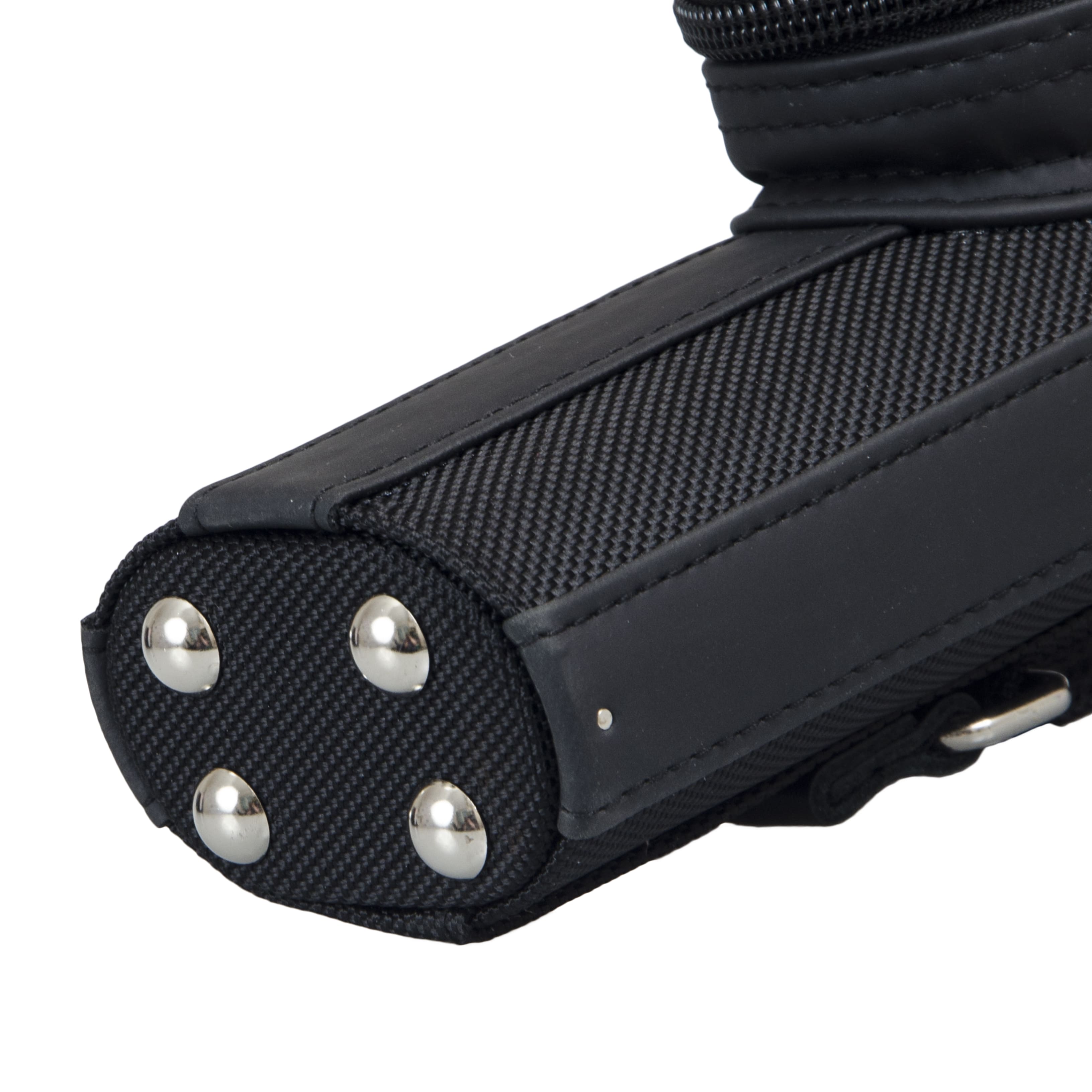 На дне с внешней стороны тубуса имеются металлические ножки. Вы можете ставить тубус на пол, не боясь испачкать материал. Благодаря ножкам, чехол устойчив в вертикальном положении.