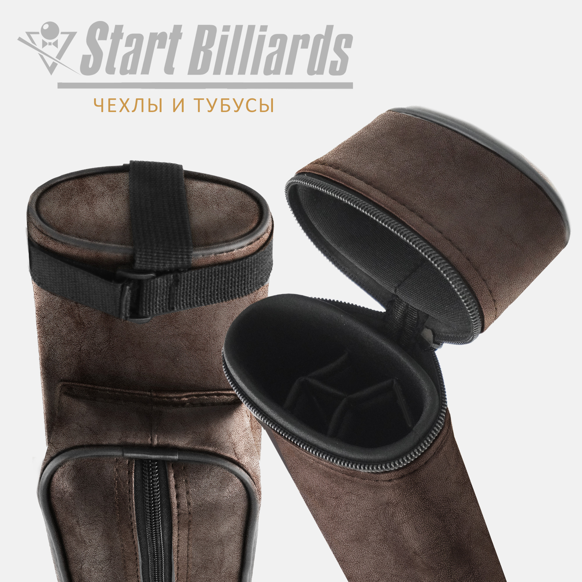 Внутреннее пространство организовано с помощью трех мягких перегородок, образующих четыре отдельные ячейки. Это позволяет безопасно транспортировать два двусоставных кия, полностью исключая контакт составных частей между собой.