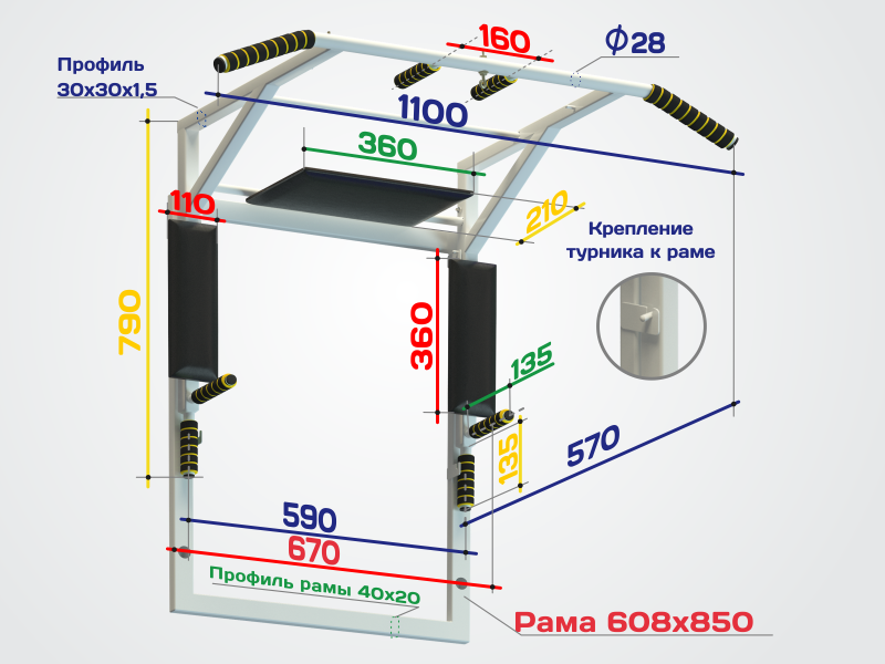 Тренажер 3 в 1: пресс, турник+ брусья с креплением к стене (на раму). Легко меняет положение из турника в брусья