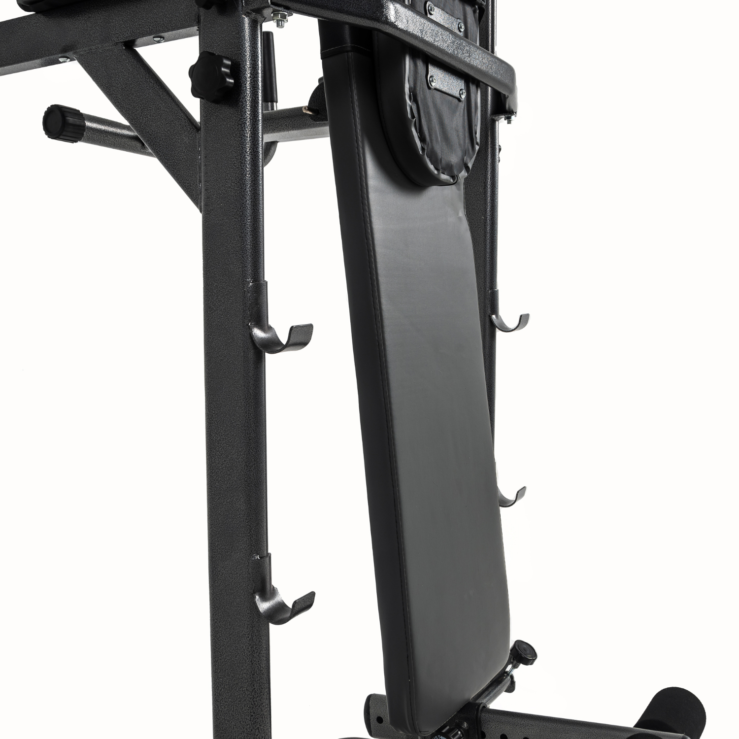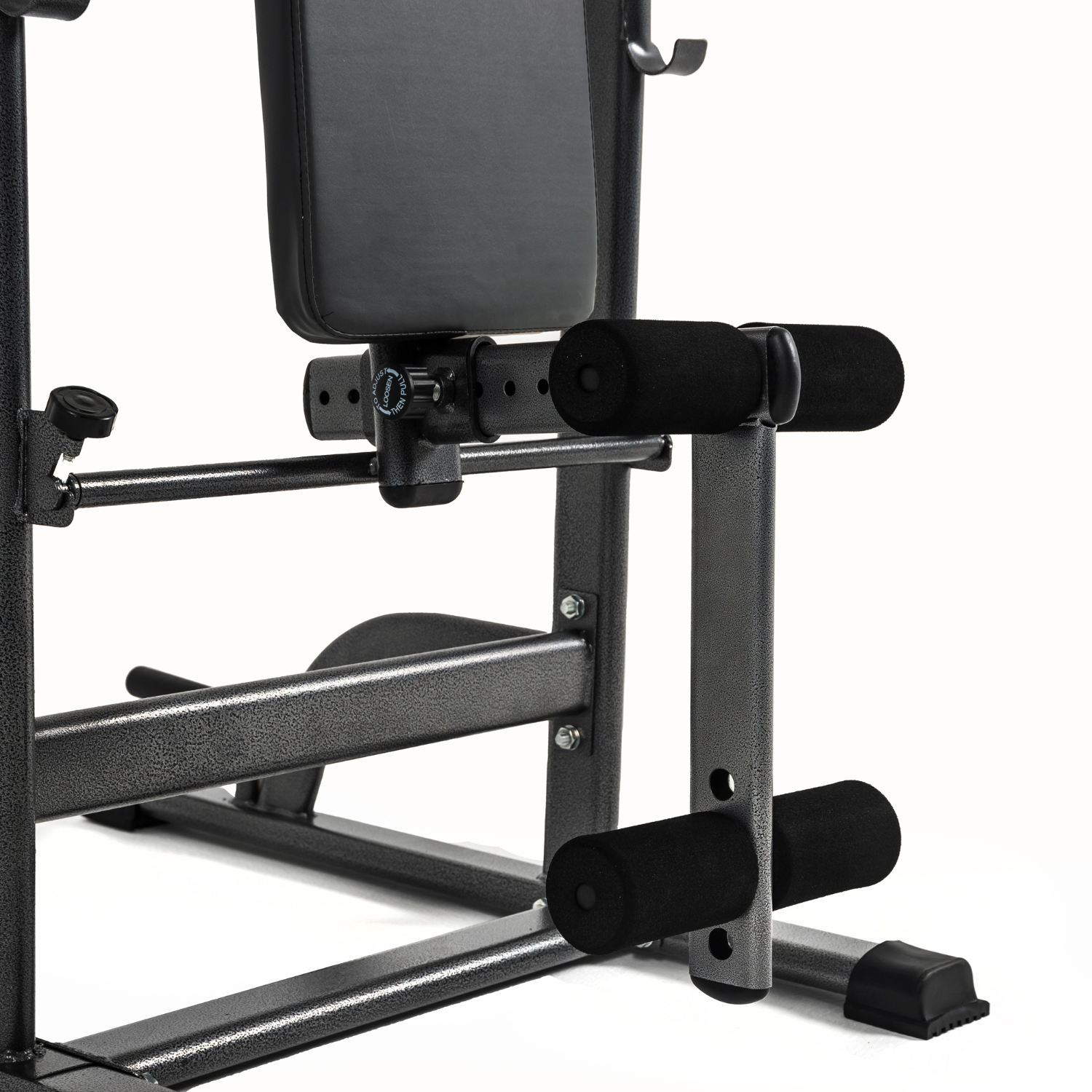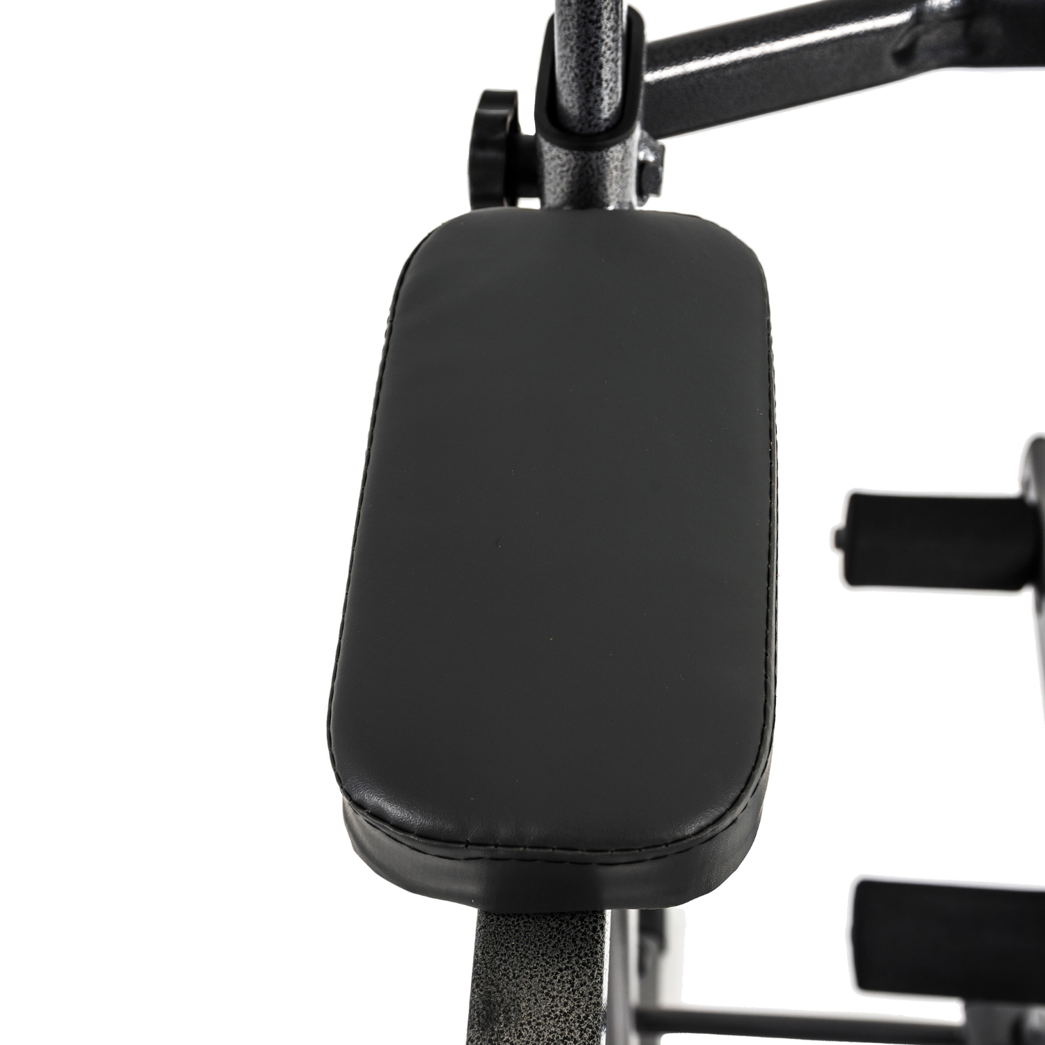 Спинка и специальные упоры для локтей дополнены двумя вертикальными рукоятками для максимального комфорта выполнения упражнений для пресса. А с помощью покрытых уретановыми пластинами подставок, вы легко сможете занять исходное положение в упоре на локтях, не рискуя получить травму.