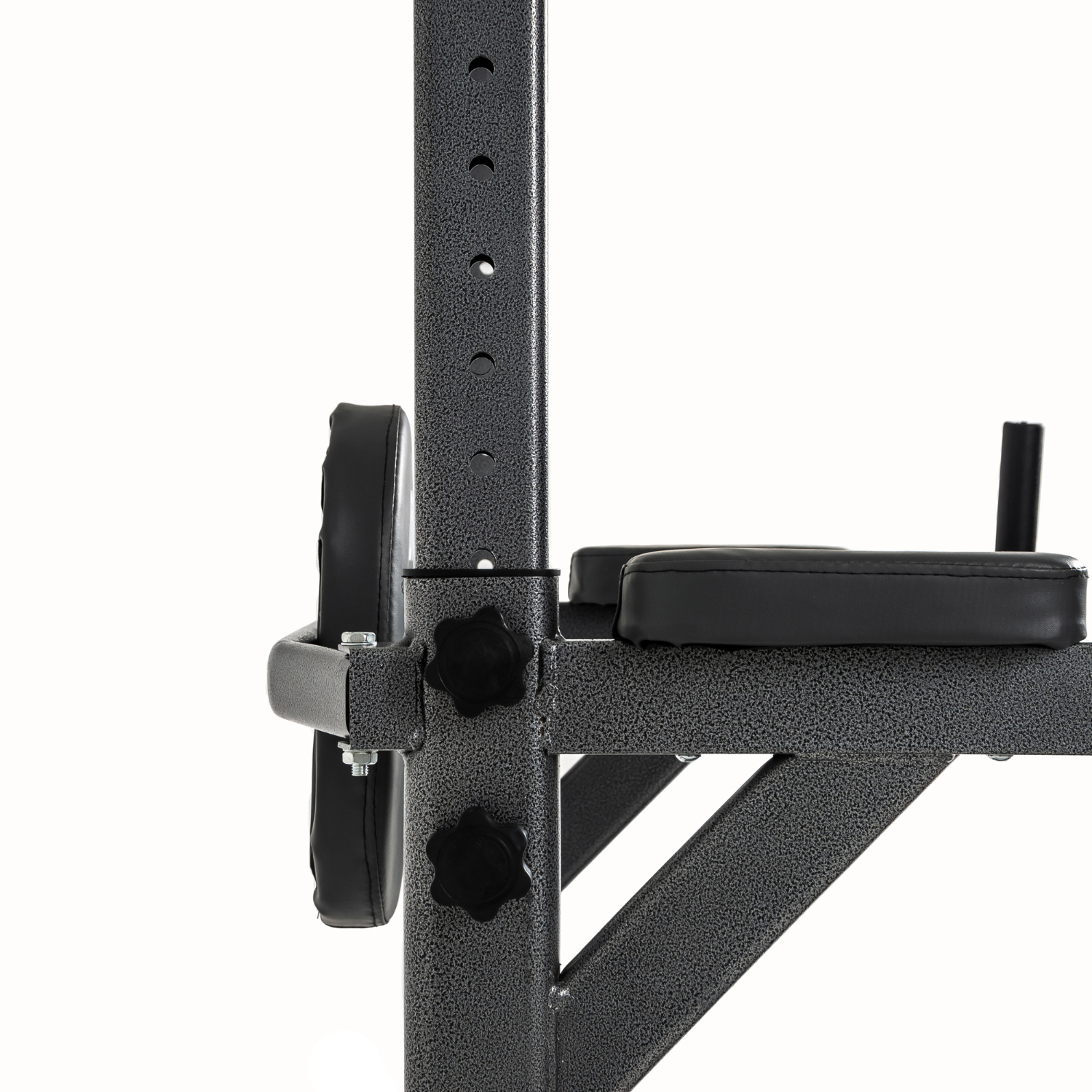 Турник регулируется по высоте от 180 до 230 см, промежуточная фиксация с помощью 4 болтов с ручками.