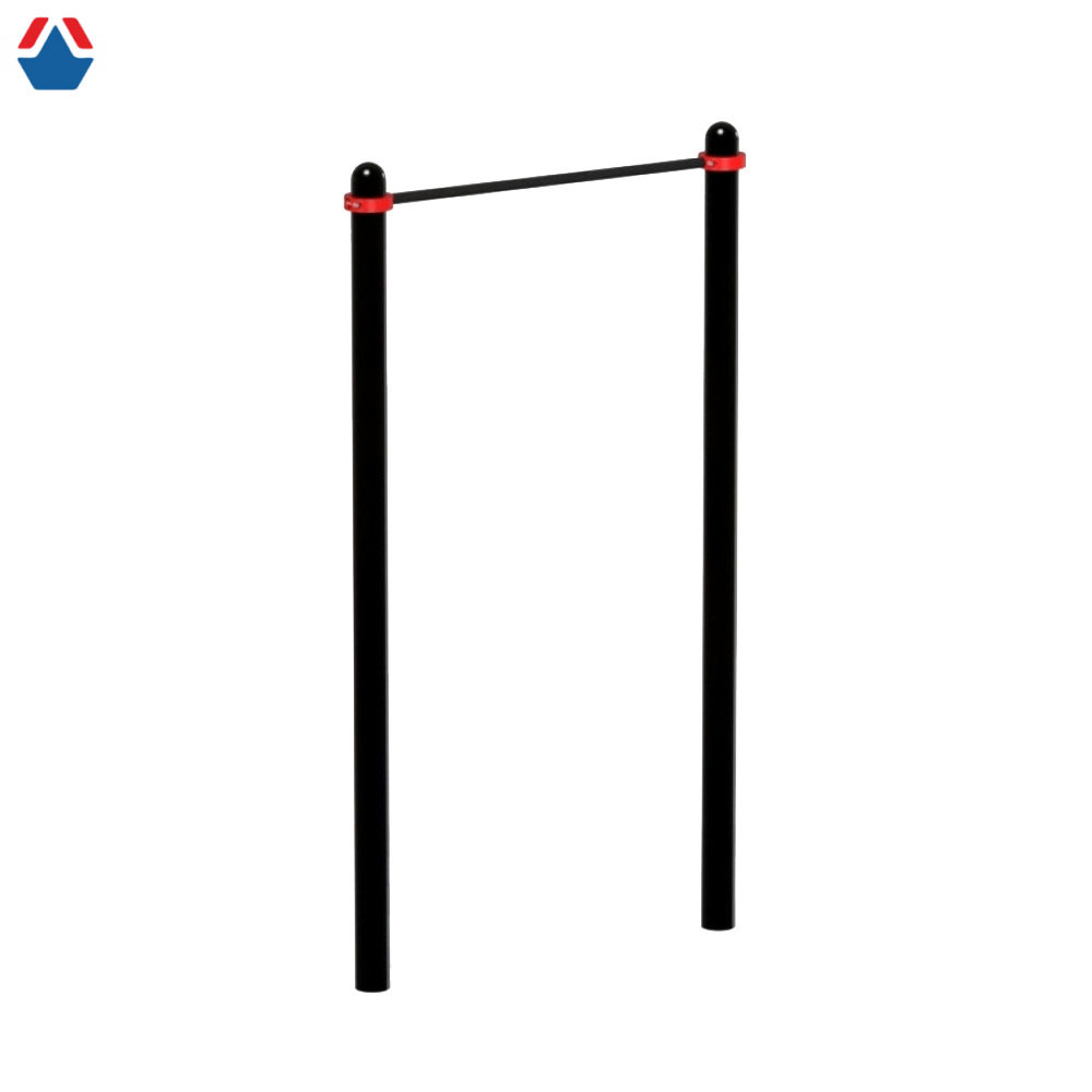 Высота опорных столбов составляет 2600 миллиметров. Сверху они закрыты полусферическими заглушками. На высоте 2400 мм закрепляется перекладина, которая удерживается стальными хомутами. Благодаря такой конструкции её высоту можно отрегулировать в соответствии с требованиями спортсменов. Длина перекладины 1200 мм.