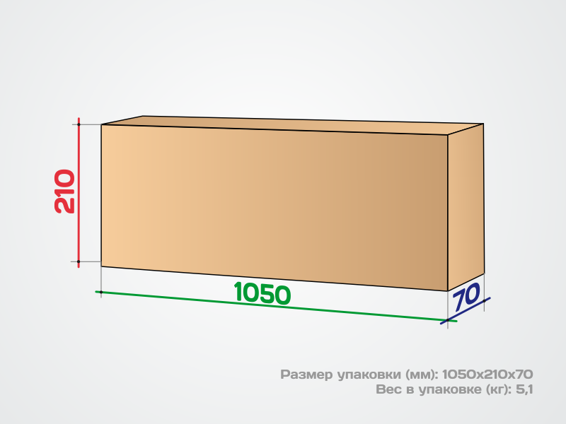 Габариты упаковки, ДхШхВ, мм: 1050х210х70