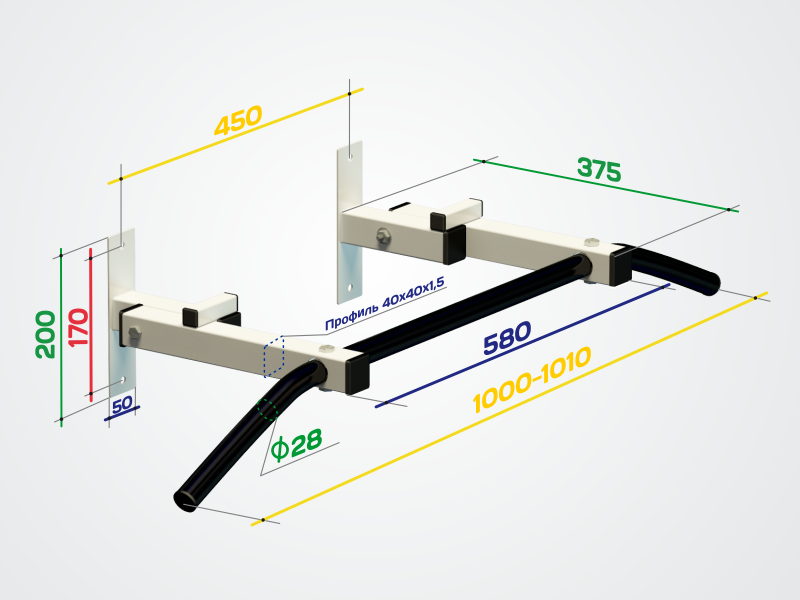 Турник настенный складной с широким хватом выдерживает нагрузку до 150 кг