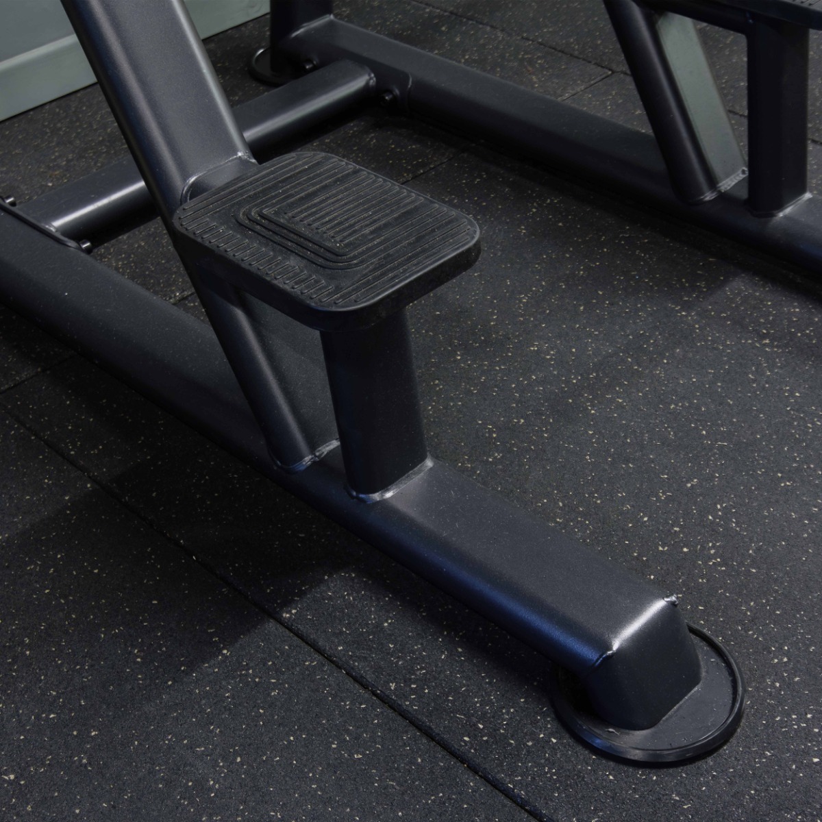 Четыре подпятника круглой формы выполнены из листового металла с резиновыми защитными кожухами, обеспечивают устойчивость тренажера и предохраняют напольное покрытие от повреждений.