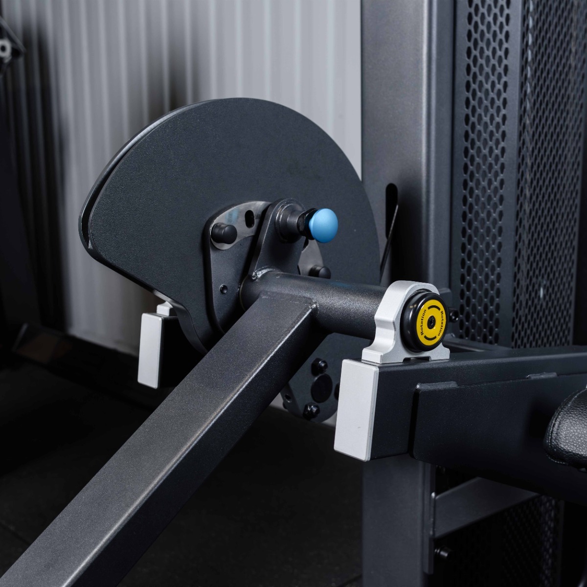 Нескользящие прочные рукоятки с резиновым покрытием с декоративными заглушками – наконечниками из полированного нержавеющего металла зафиксированные болтом, расположены под оптимальным углом для надежной фиксации тела атлета во время тренировки.