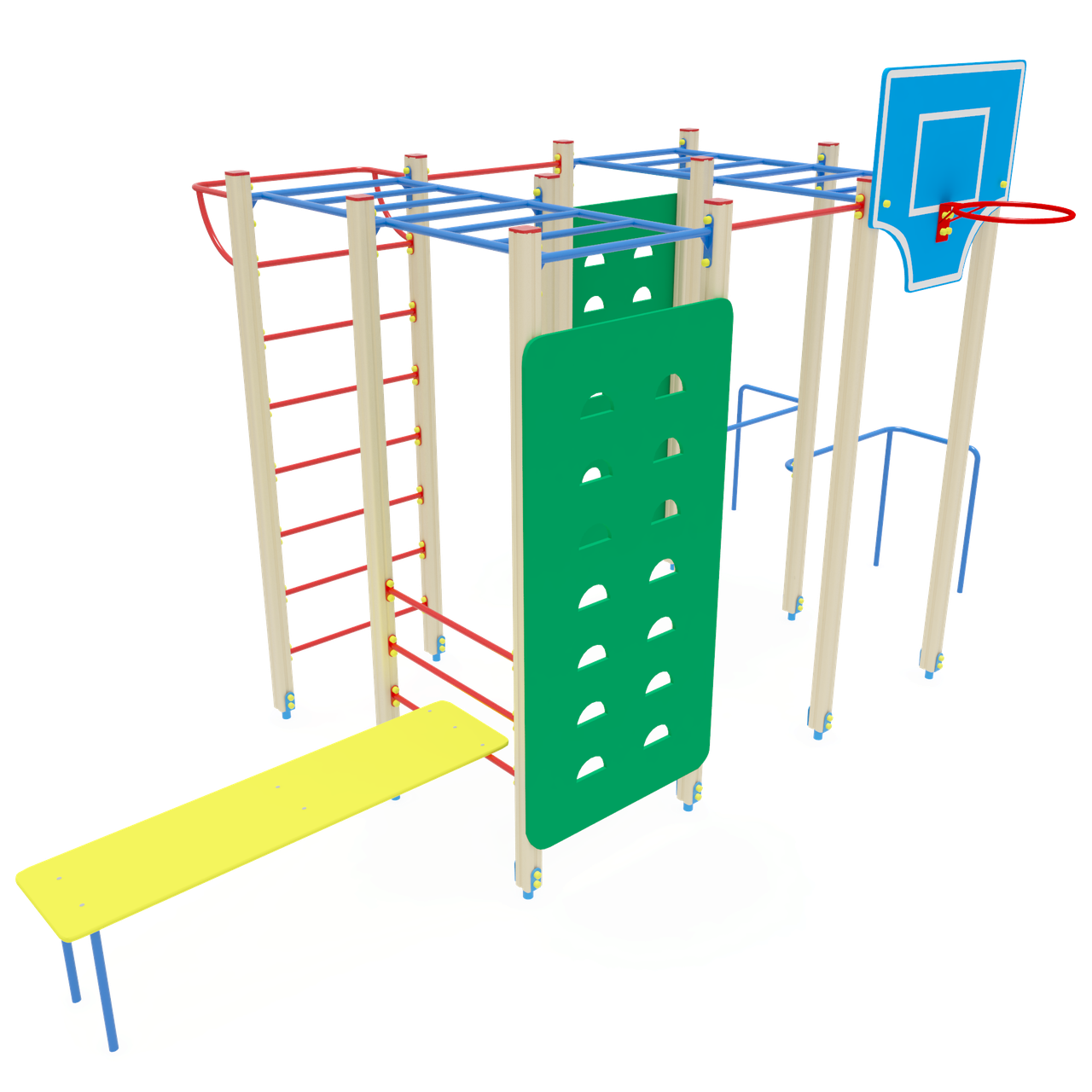 Назначение: Спортивные комплексы предназначены для детей от 6 до 14 лет и выполняют следующие функции: создают условия, обеспечивающие физическое развитие ребенка, развивающие координацию движений, преодоление страха высоты, ловкость и смелость, чувство коллективизма в массовых играх. Параметры: Длина 5580 мм Ширина 2900 мм Высота 2500 мм Зона безопасности 8580х5900 Гарантийный срок эксплуатации 5 лет