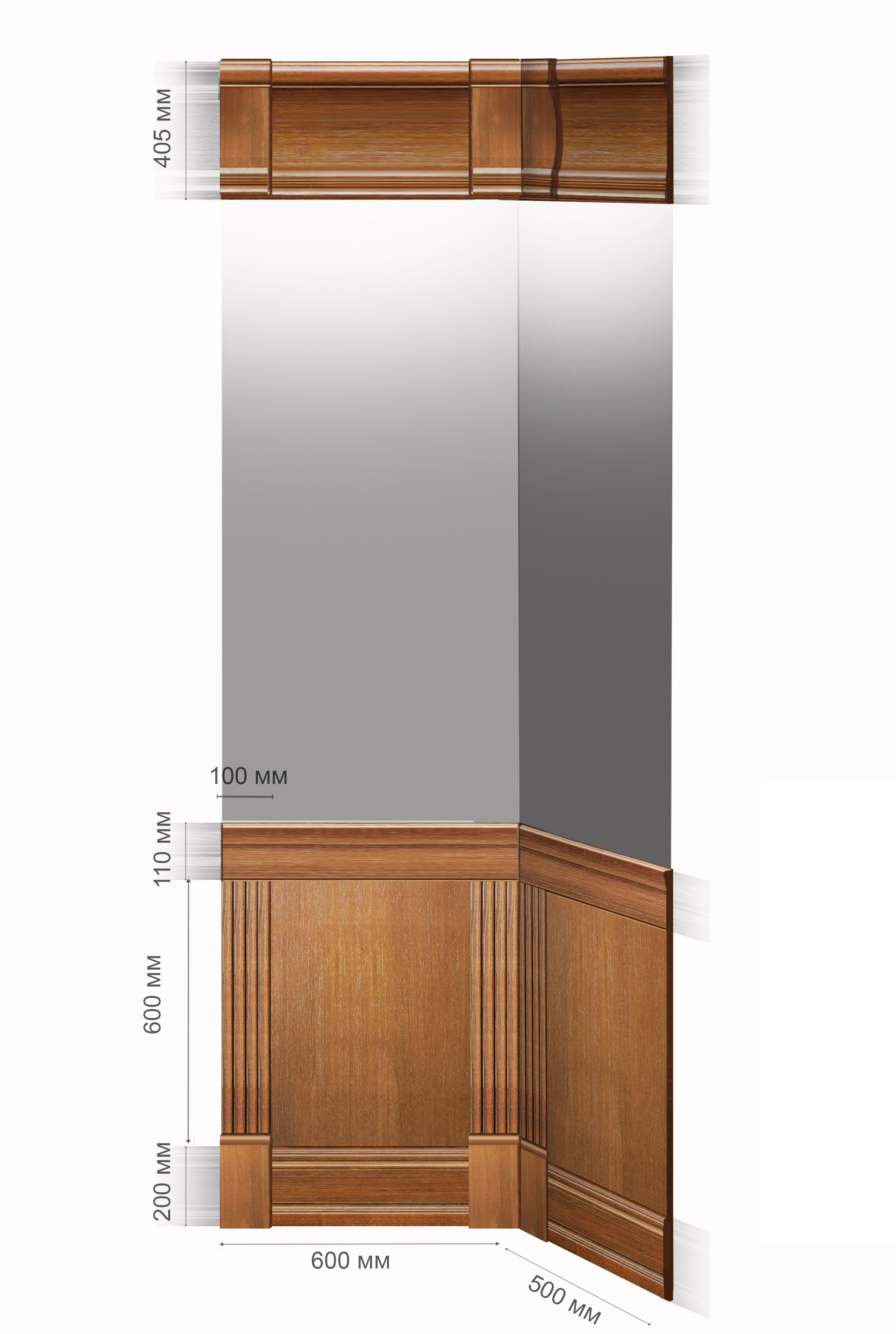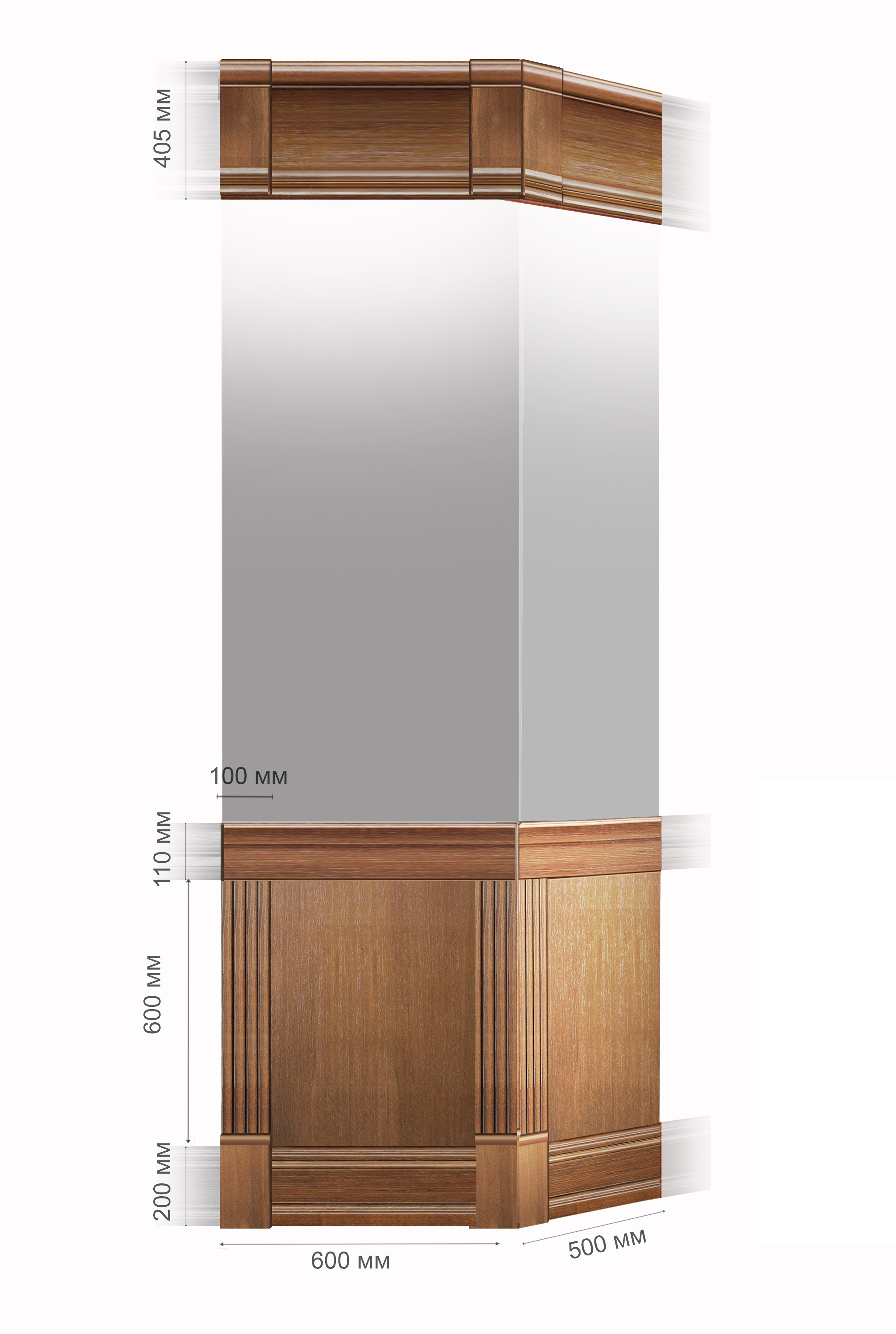Ширина: 600 мм / Высота: 910 мм / Глубина: 500 мм / Высота карниза: 405 мм