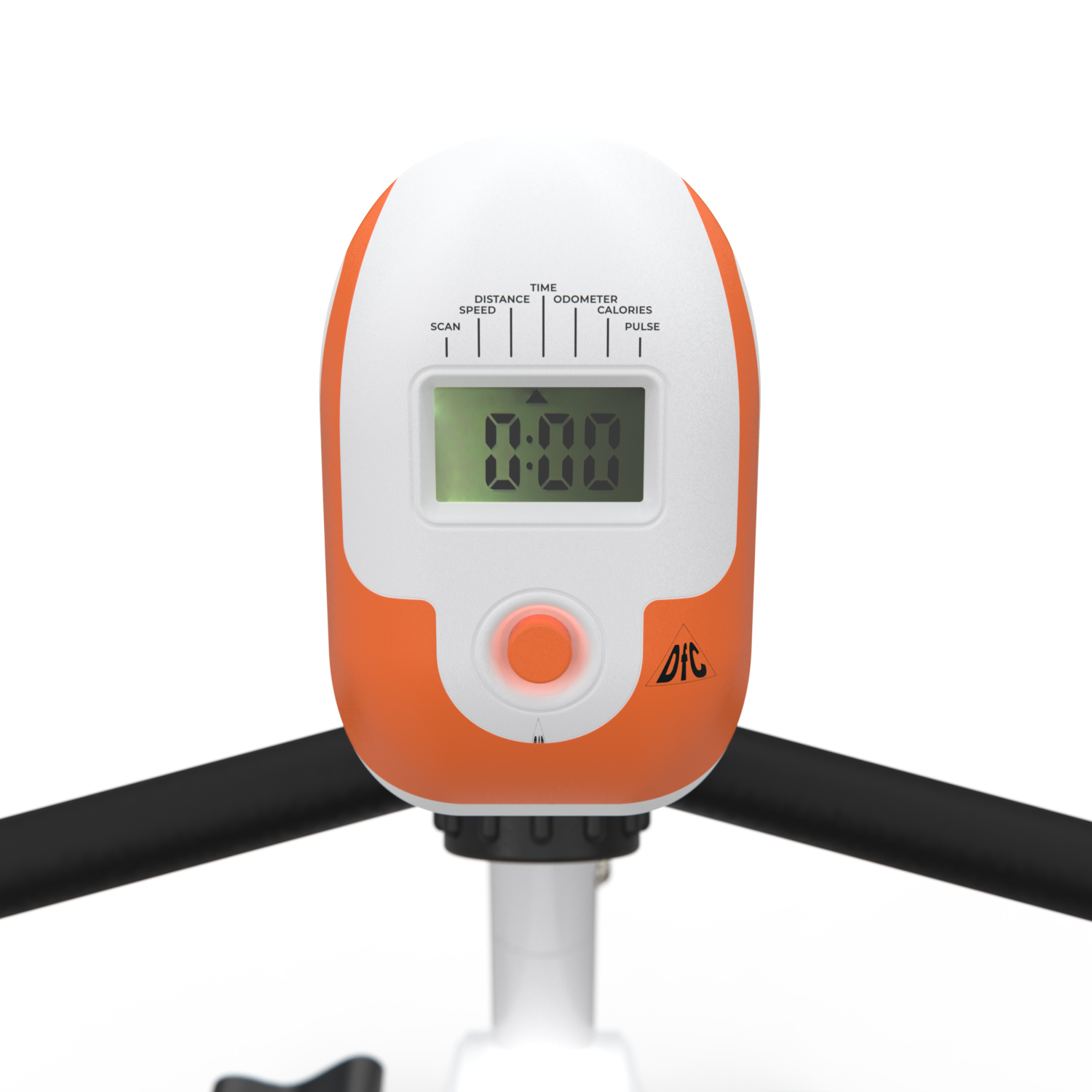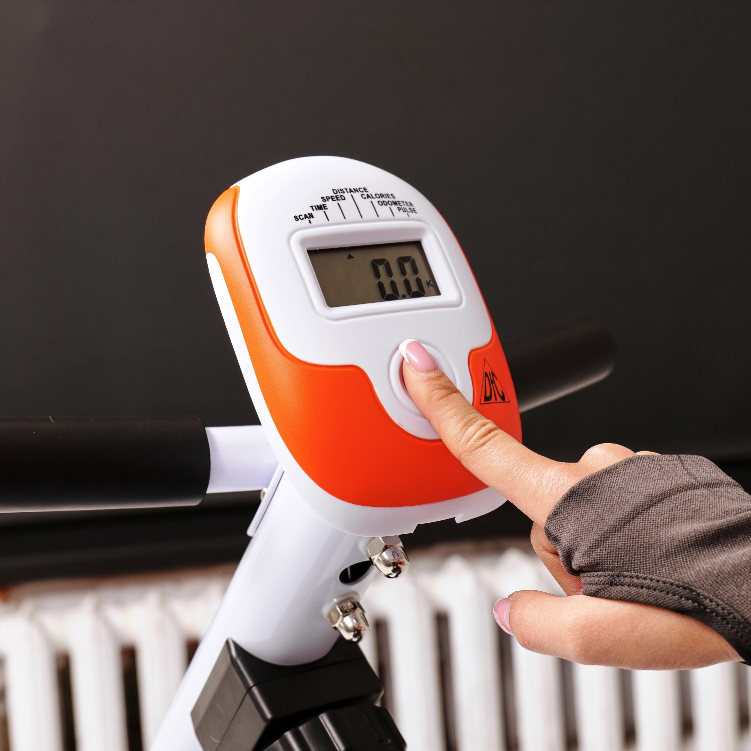 Показания дисплея: время, скорость, дистанция, калории, скан, пульс.