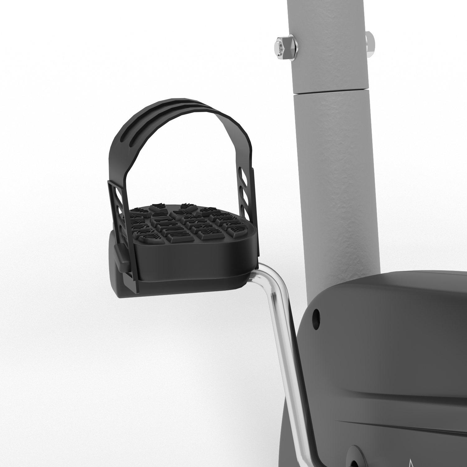 Оснащены рифлёным покрытием и ремнями с регулировкой по ширине стопы.