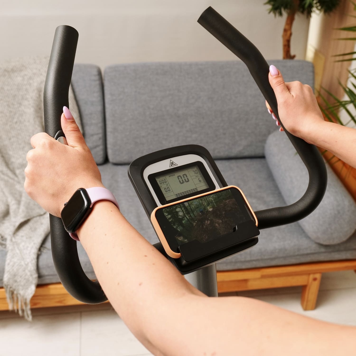 Монохромный LCD дисплей, расположенный на передней консоли, выводит основные параметры тренировки. Также есть держатель для телефона или планшета, предусмотрена 21 программа тренировок.