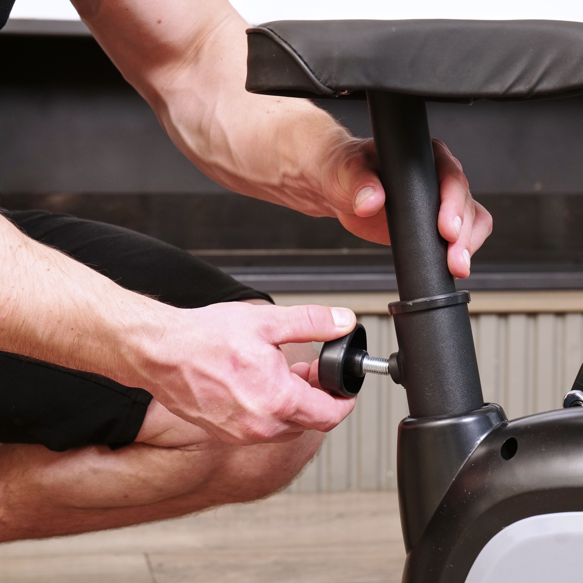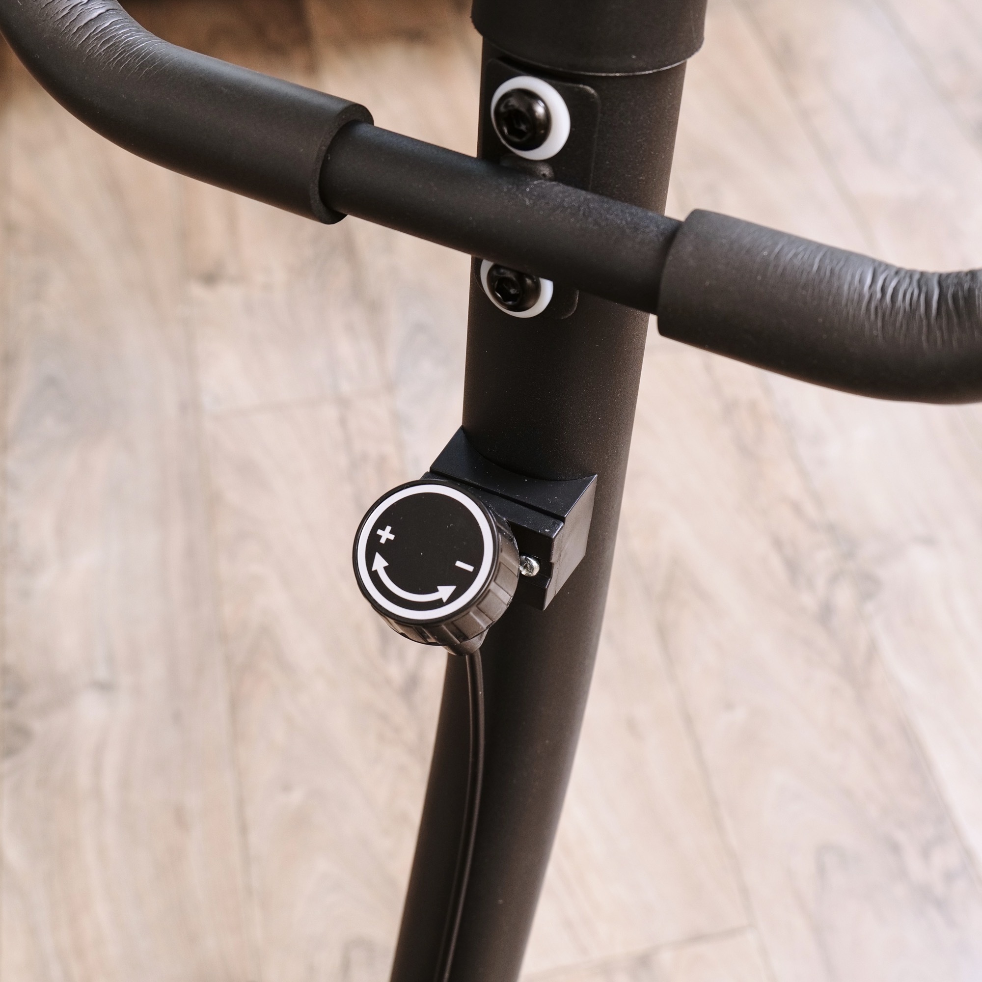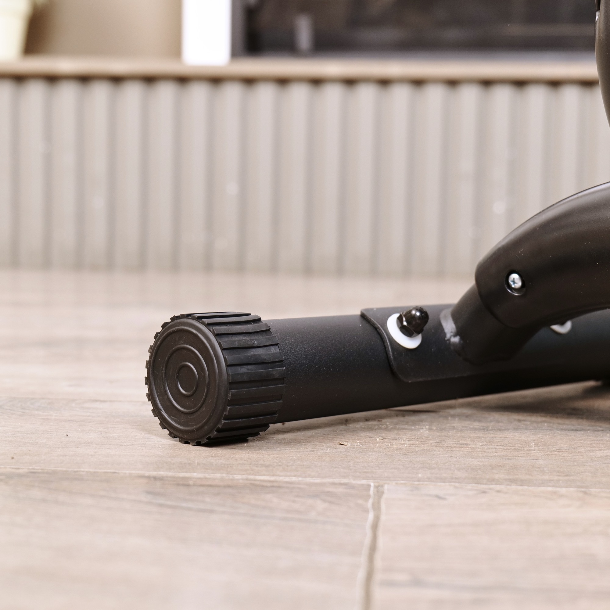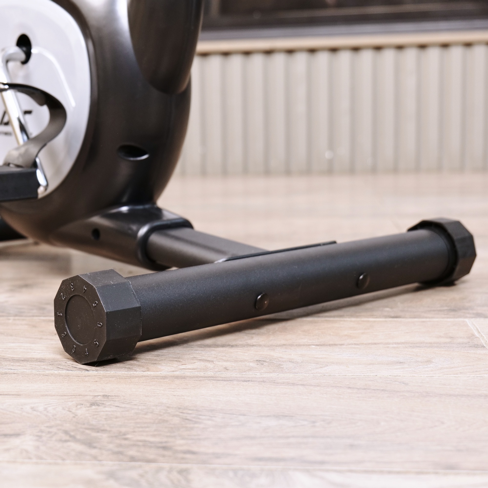 Велотренажер оснащён компенсаторами неровности пола, что обеспечивает устойчивость и безопасность во время занятий. Регулировка сиденья позволяет настроить его высоту в пяти положениях, а размер от руля до конца сиденья равен 75 см, обеспечивая максимальный комфорт для пользователей разного роста.