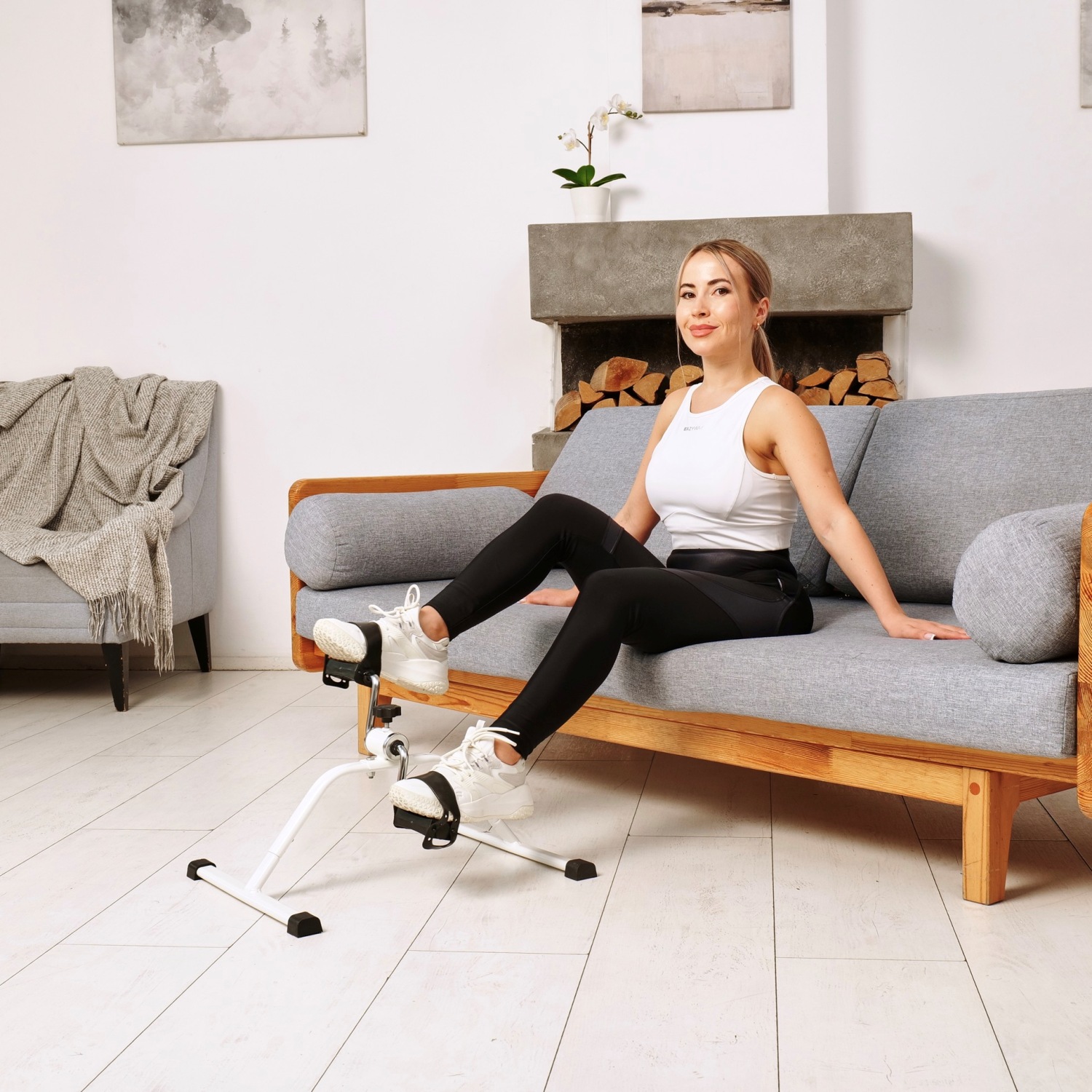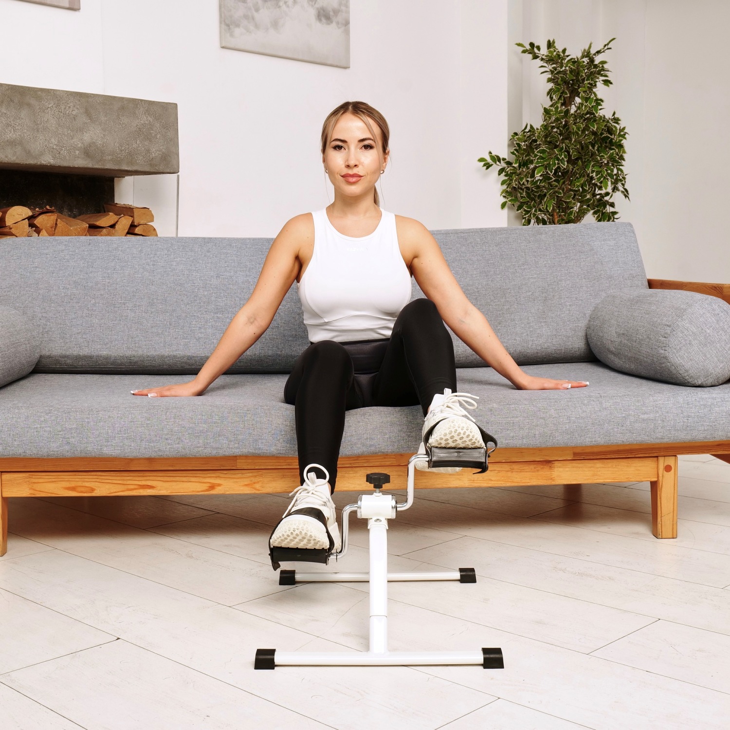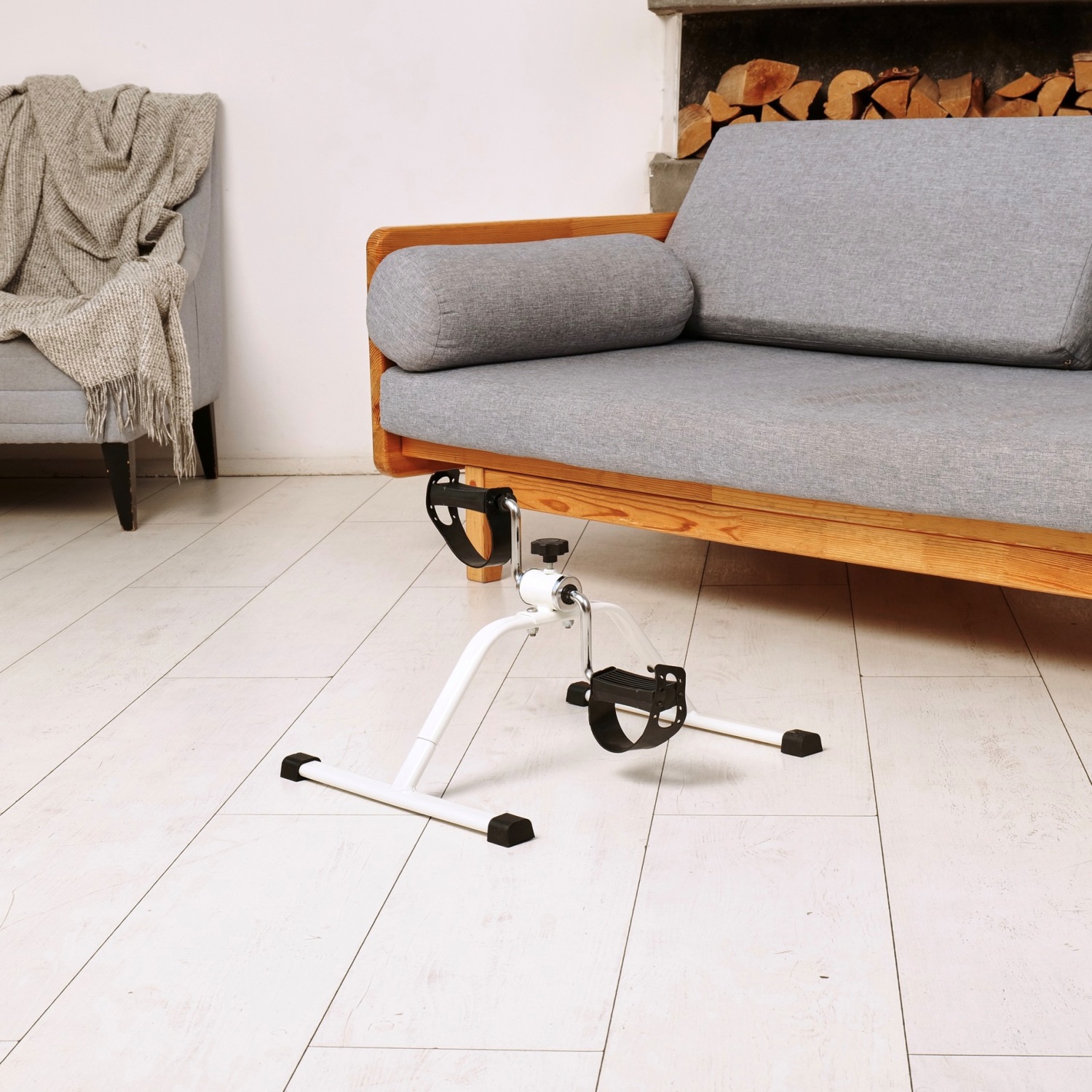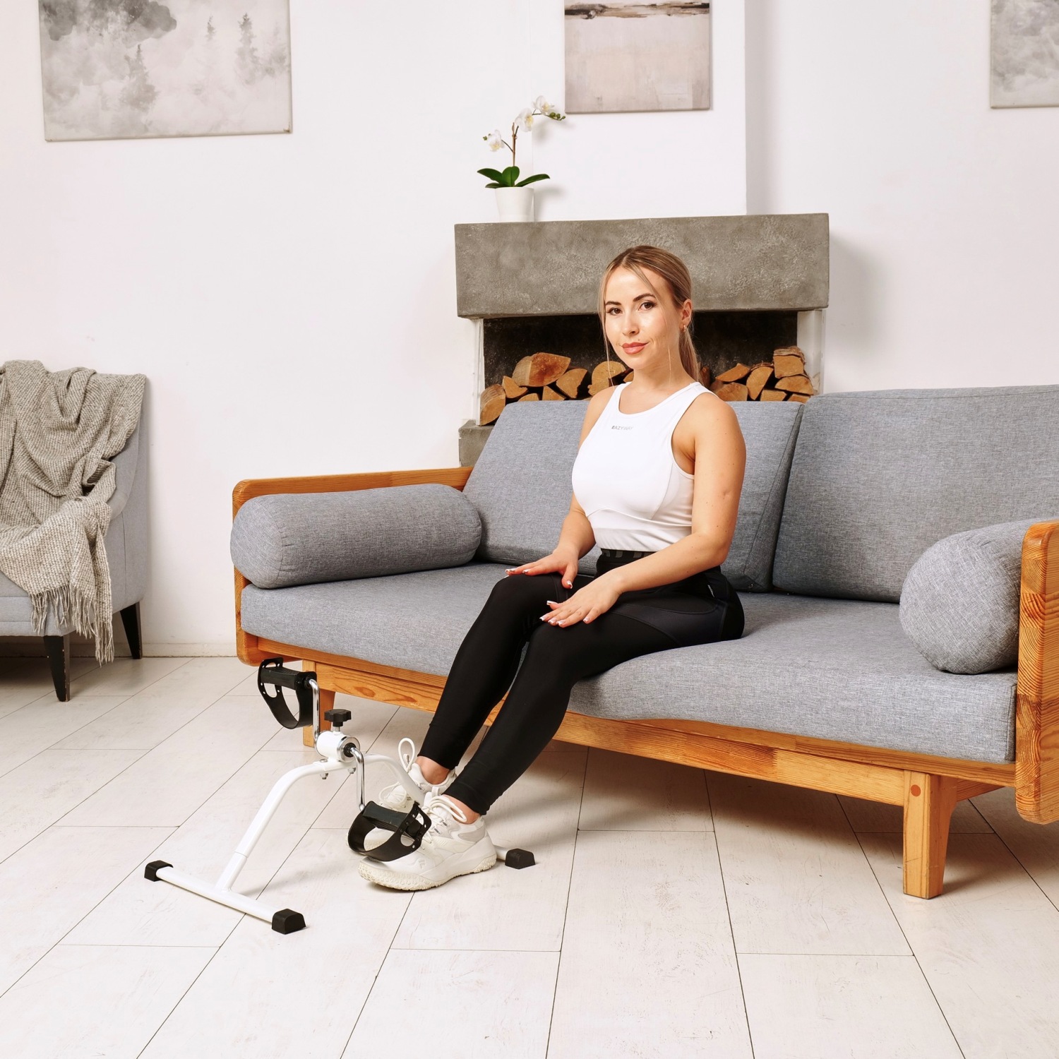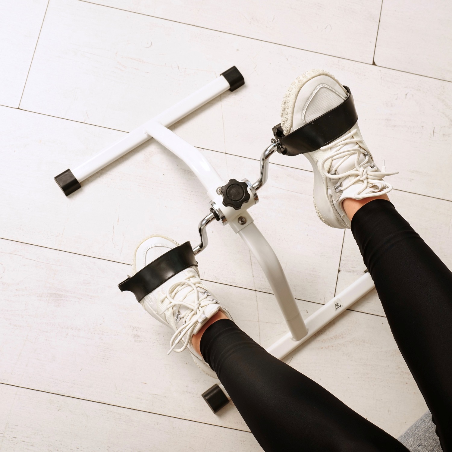 Самый простой и надежный мини-велотренажер W003XW белого цвета для домашних тренировок. Идеально подходит для тренировки рук и ног. Быстро изменить нагрузку во время тренировки можно с помощью механической ручки.