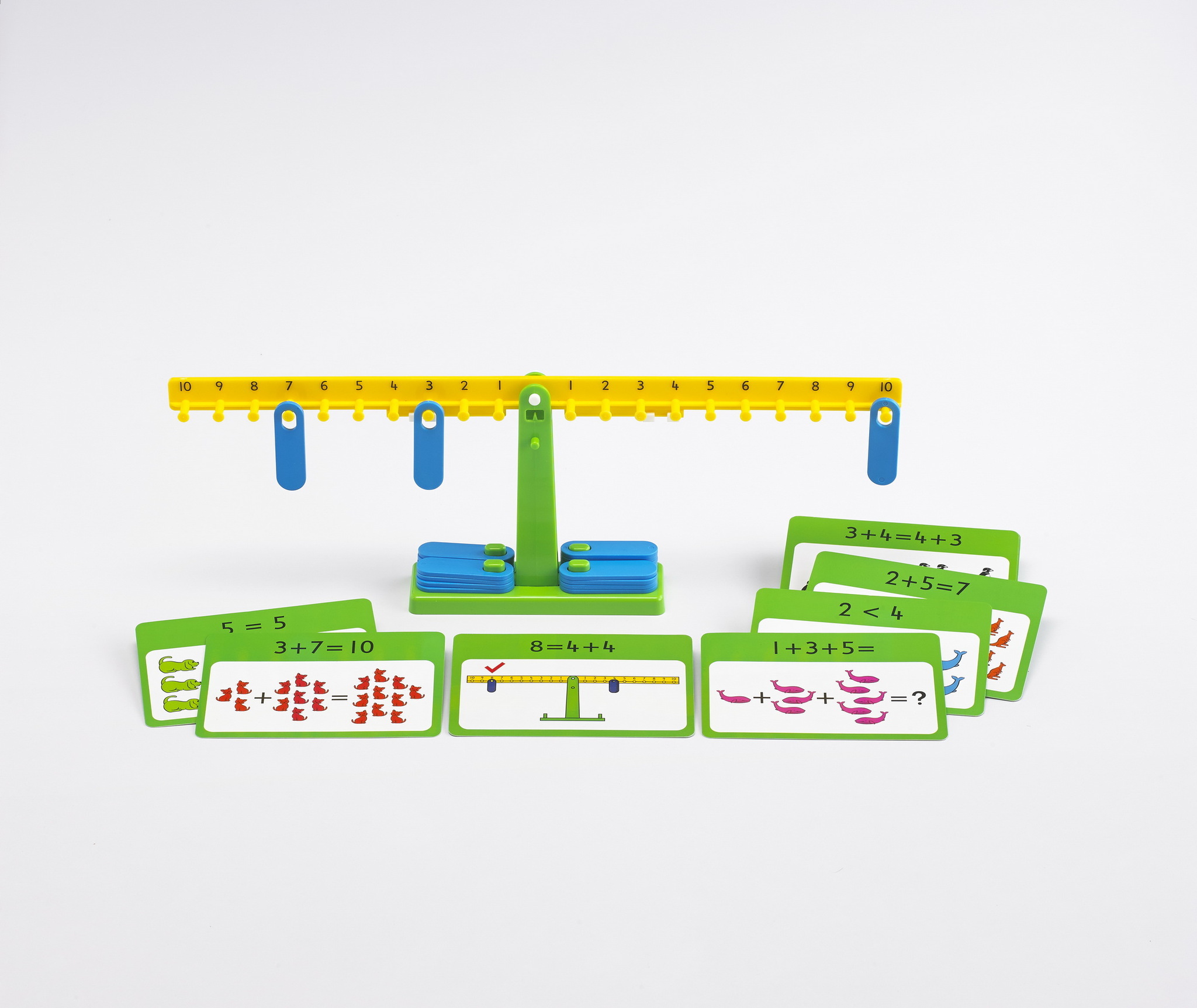 Набор «Математические весы с заданиями» применяется для наглядной демонстрации детям взаимосвязи цифр и математических действий, развивает математические способности.