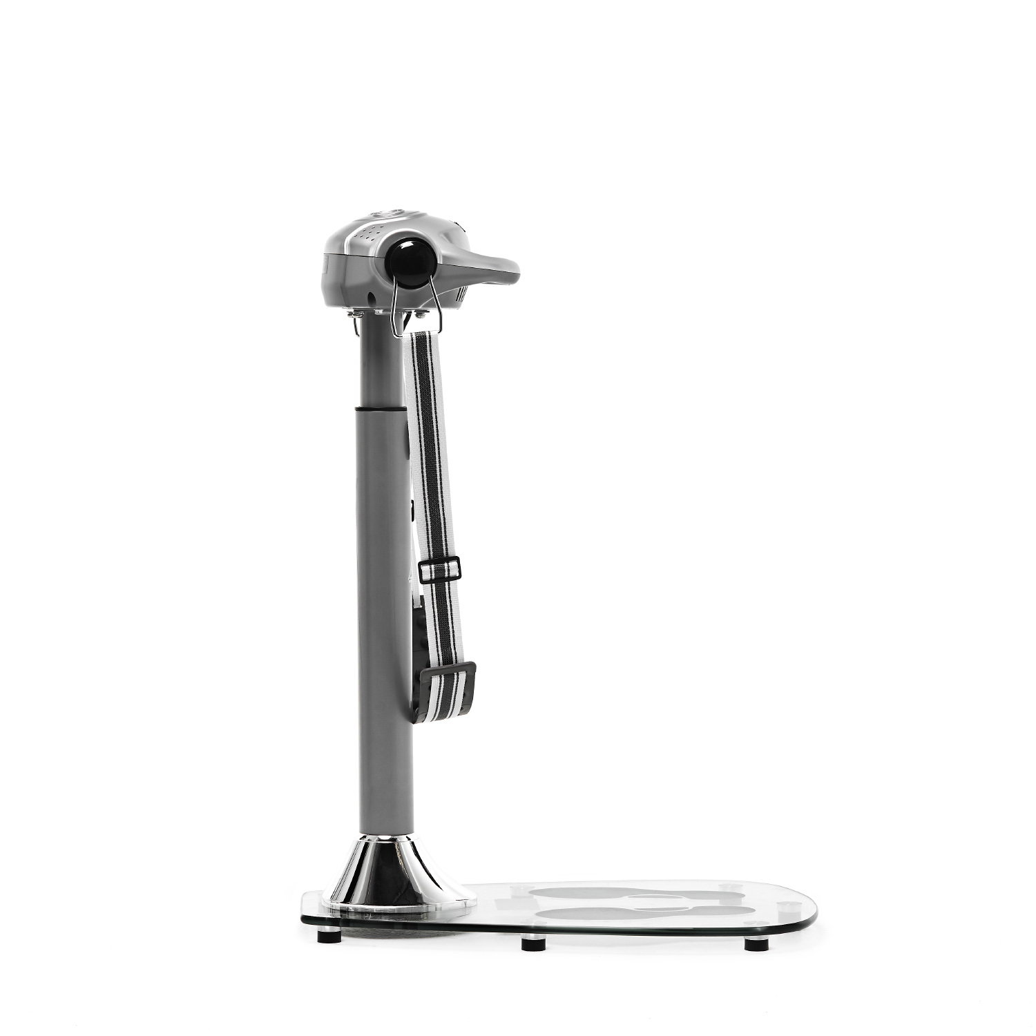 Рабочая часть — специальный пояс с округлыми выпуклостями для массажа, поставляется в комплекте. Его можно регулировать по длине при необходимости. Для удобства и безопасности тренировки на передней консоли предусмотрен поручень, за который необходимо придерживаться во время работы тренажёра.