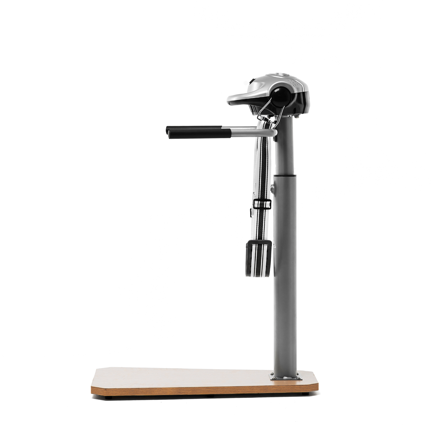 Это компактный, но прочный тренажёр: опора выполнена из гальванической трубы 76х1,5 мм. Основание-платформа изготовлено из дерева, имеет оптимальную ширину для устойчивого положения во время сеанса.