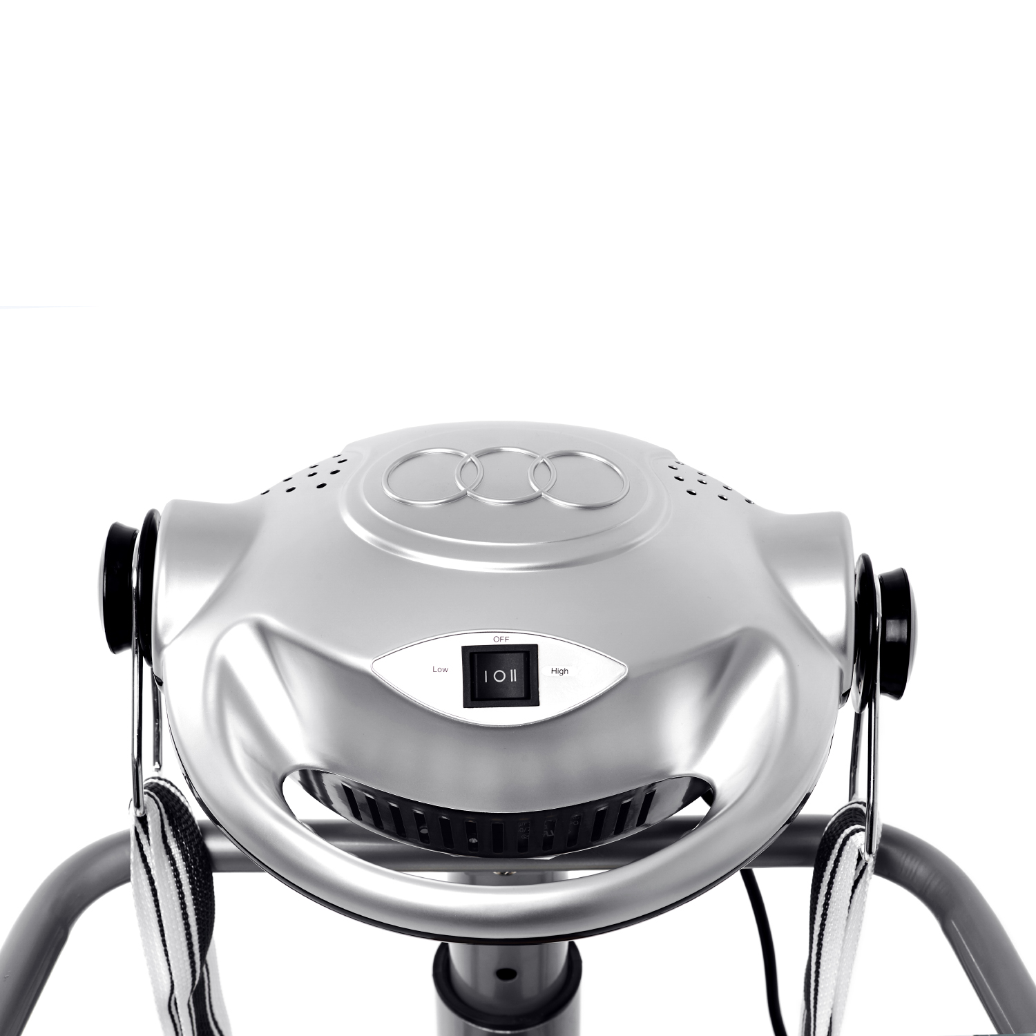 Панель управления и дисплей для отслеживания времени расположены на передней консоли. К ней же крепится массажный пояс, входящий в комплектацию тренажёра. Для удобства и безопасности предусмотрены специальные поручни: один в центре на консоли и два по бокам.