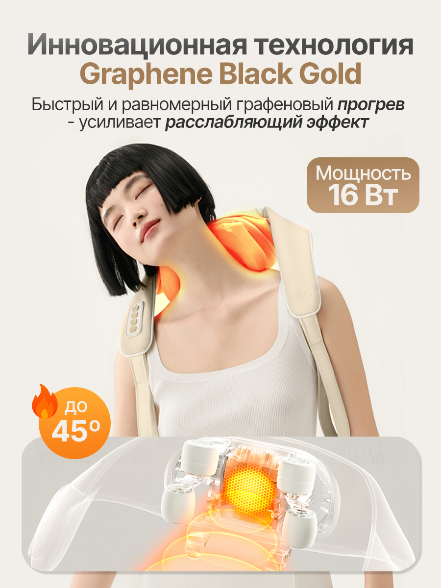 Одной из главных особенностей является его бесшумность. Благодаря продуманной конструкции и высококачественным компонентам, он работает практически без шума, что создаёт дополнительный комфорт при использовании. Ремешок, который входит в комплект, помогает зафиксировать его в нужной позиции, например, на шее, плечах, пояснице, коленях или икрах. Это особенно удобно для длительных сеансов массажа, когда важно, чтобы устройство не смещалось и оставалось на месте.