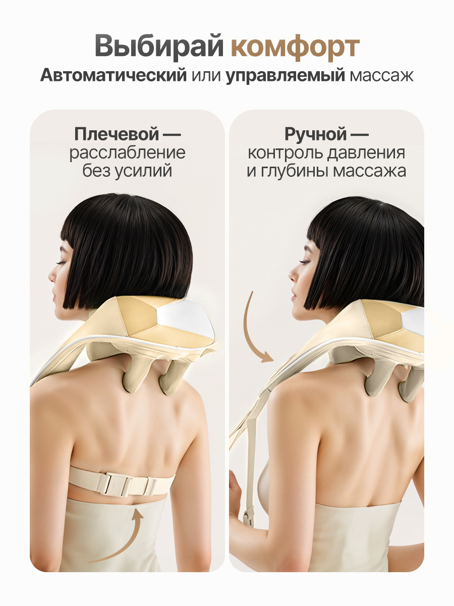 Вибромассажер для плеч и шеи DFC LAZYCLOUD VM-MA30 бежевого цвета — это удобный и лёгкий вибромассажёр для дома, который поможет расслабиться, снять напряжение и улучшить кровообращение после рабочего дня или тренировок.