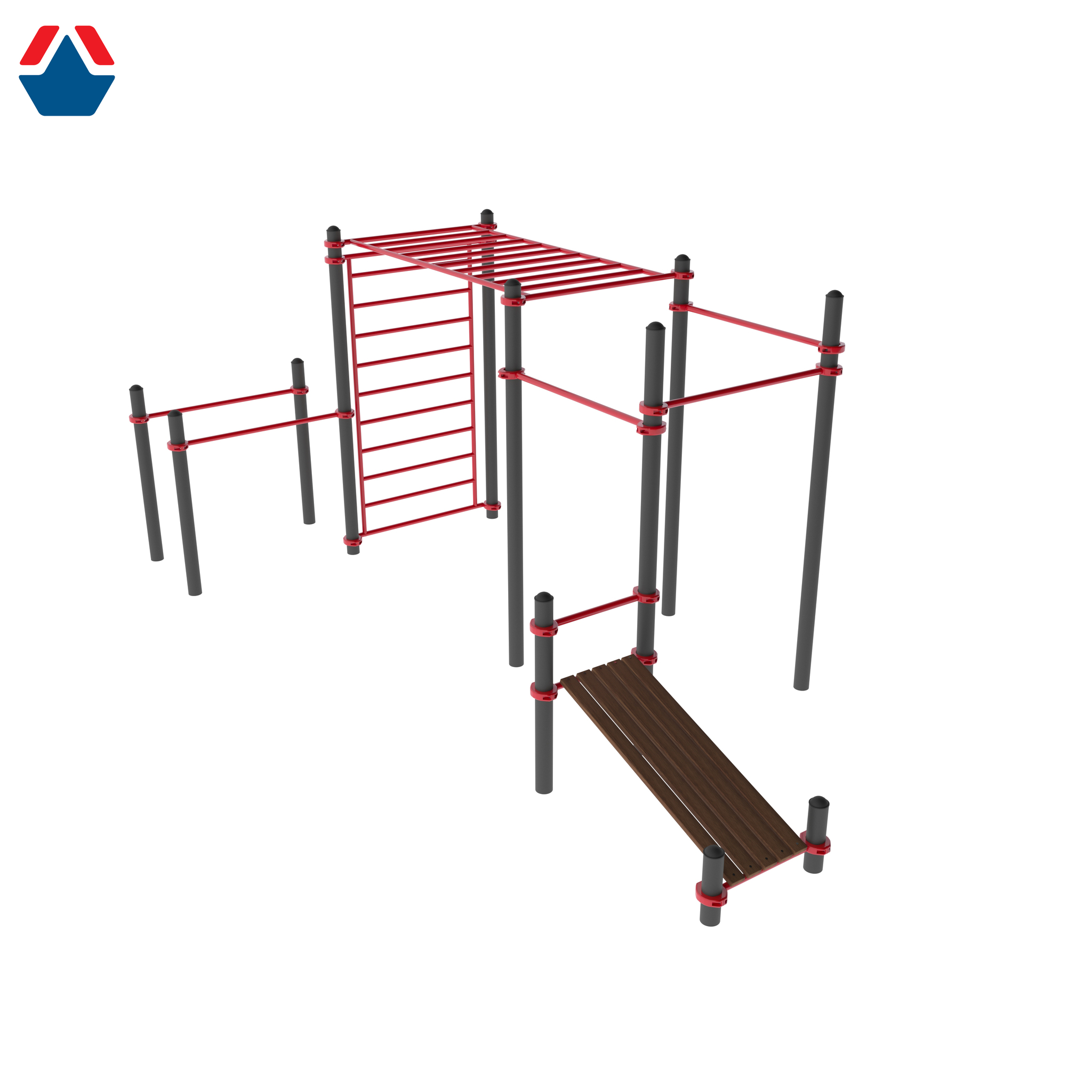 Воркаут комплекс с рукоходом, шведской стенкой, брусьями, скамейкой и турниками К-108