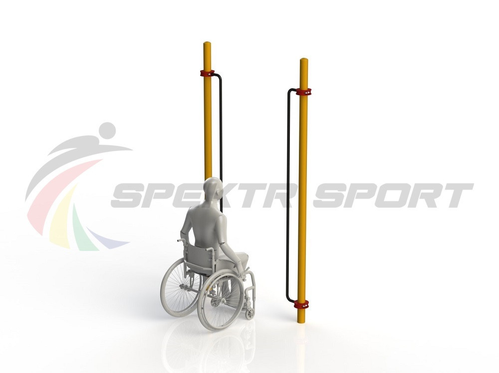 Поручни помогают приподниматься и дотягиваться до тренажеров, адаптированных для колясочников