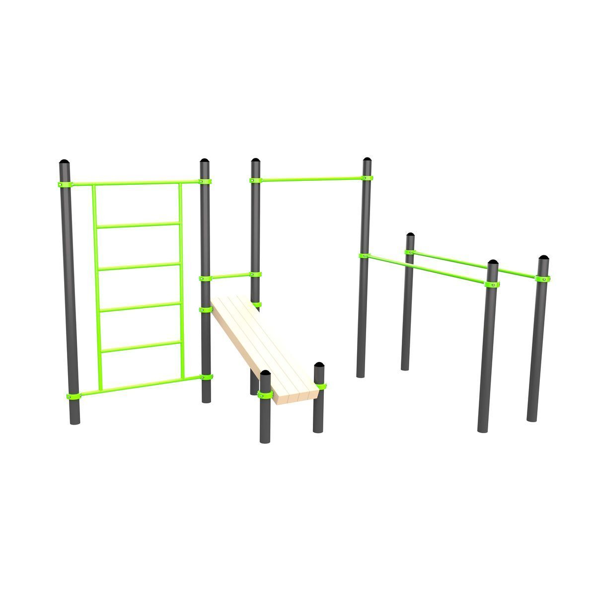 Уличный воркаут-комплекс W201 ZAVODSPORTA* предназначен для установки на уличных спортивных площадках с учетом интенсивной эксплуатации в разных климатических условиях.