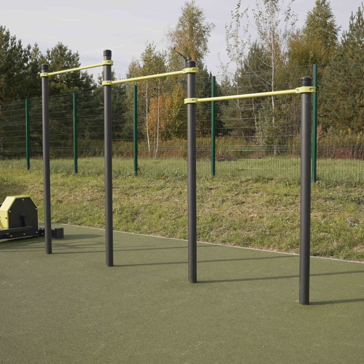 Уличные перекладины разноуровневые (три уровня) для подтягивания из виса на высокой перекладине ZAVODSPORTA* предназначена для установки на уличных спортивных площадках с учетом интенсивной эксплуатации в разных климатических условиях.
