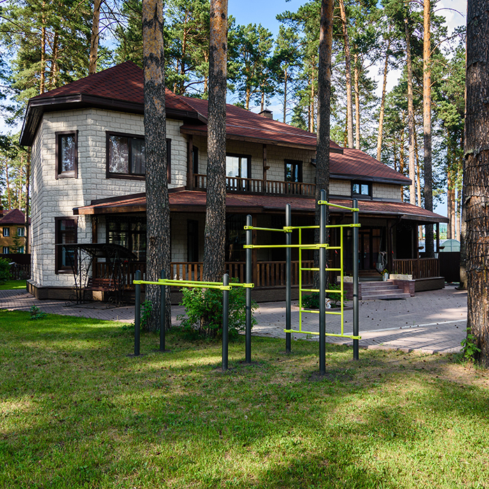 Перекладины турников длиной 1200 мм и шведской стенки выполнены из металлической трубы диаметром 34 мм с толщиной стенки 3,2 мм.