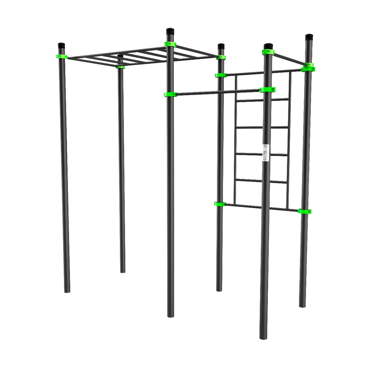 Перекладины турников, шведской стенки и горизонтального рукохода выполнены из металлической трубы диаметром 34 мм с толщиной стенки 3,2 мм.