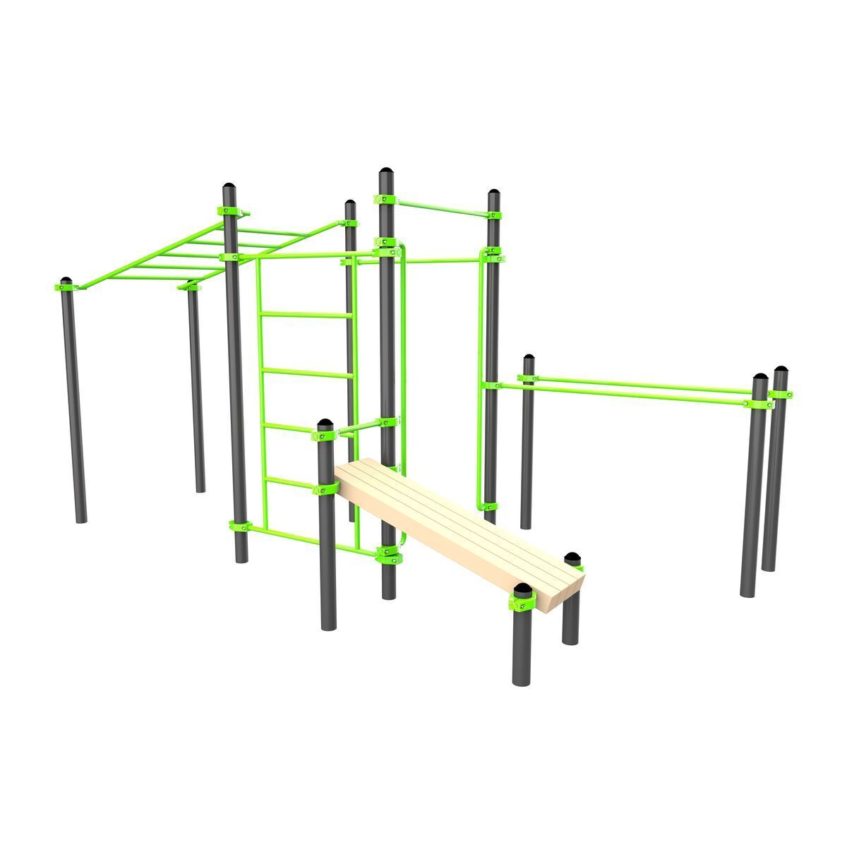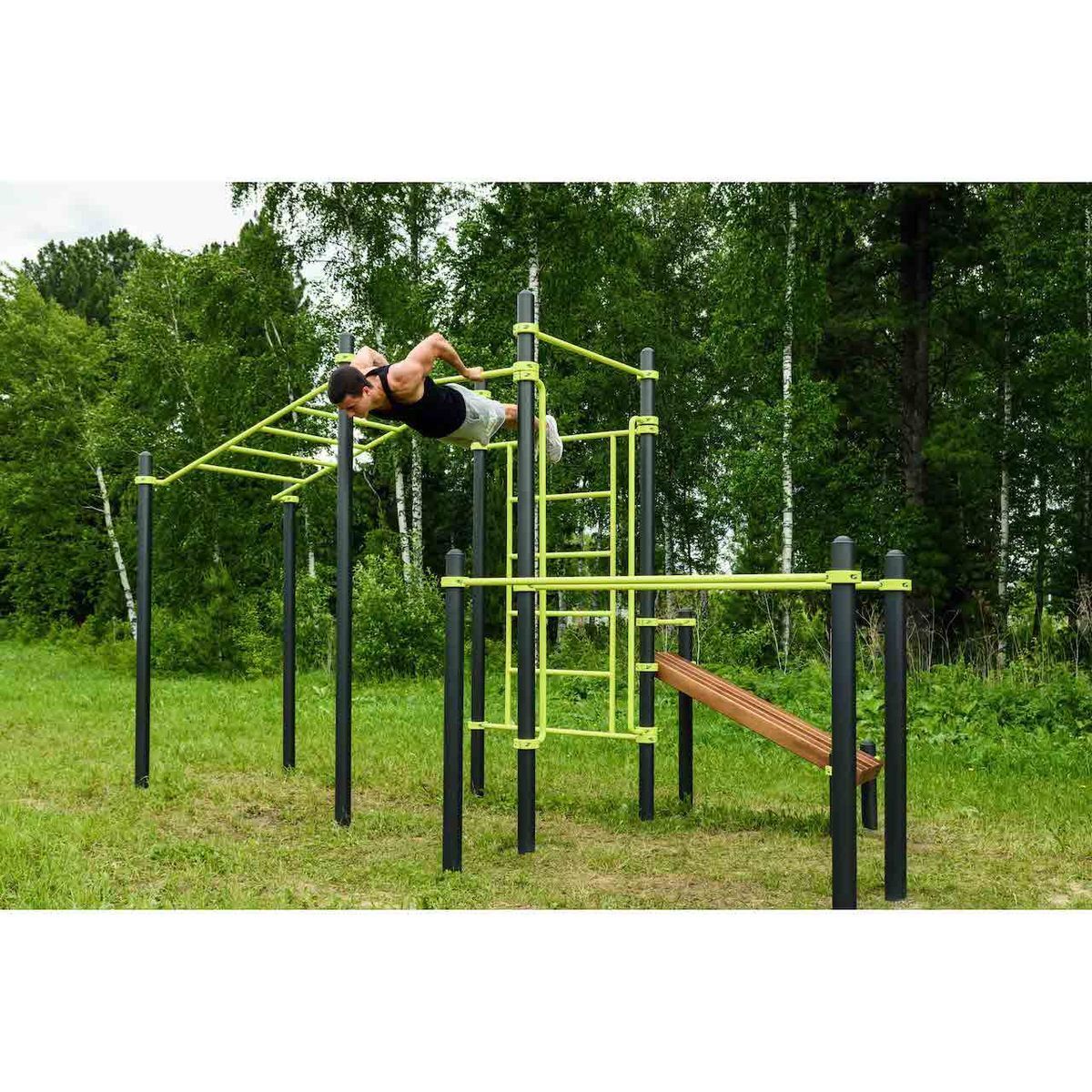 Уличный воркаут-комплекс W237 ZAVODSPORTA* предназначен для установки на уличных спортивных площадках с учетом интенсивной эксплуатации в разных климатических условиях.