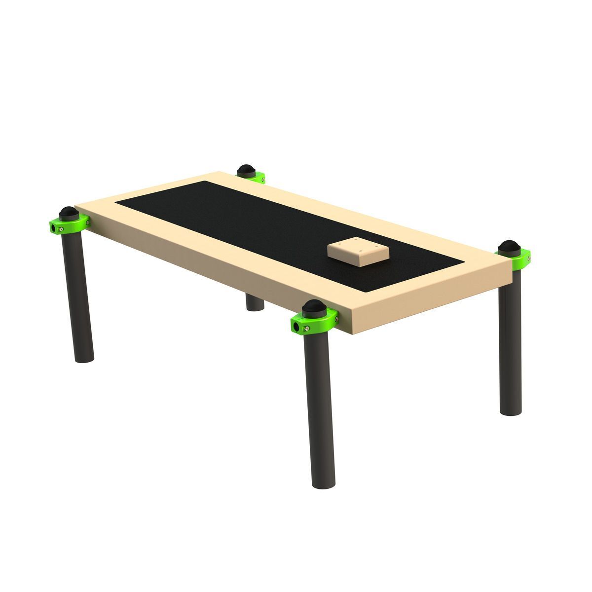 Помост 2000×800×150 мм с резиновым ковриком и платформой для фиксации результатов выполнен из древесины хвойных пород, предварительно высушенной до нормативной влажности и покрытой износостойким лаком. Такое покрытие формирует прочную защитную плёнку, устойчивую к ультрафиолетовому излучению, влаге и перепадам температур, что продлевает срок службы древесины при круглогодичной эксплуатации на открытом воздухе.