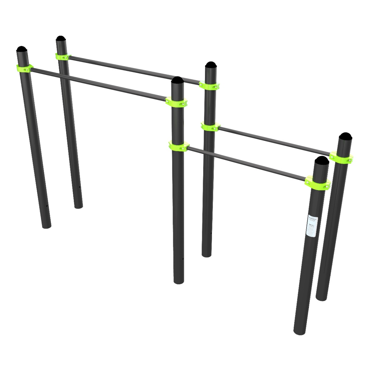 Уличные двойные разноуровневые брусья для отжиманий ZAVODSPORTA* предназначены для установки на уличных спортивных площадках с учетом интенсивной эксплуатации в разных климатических условиях.