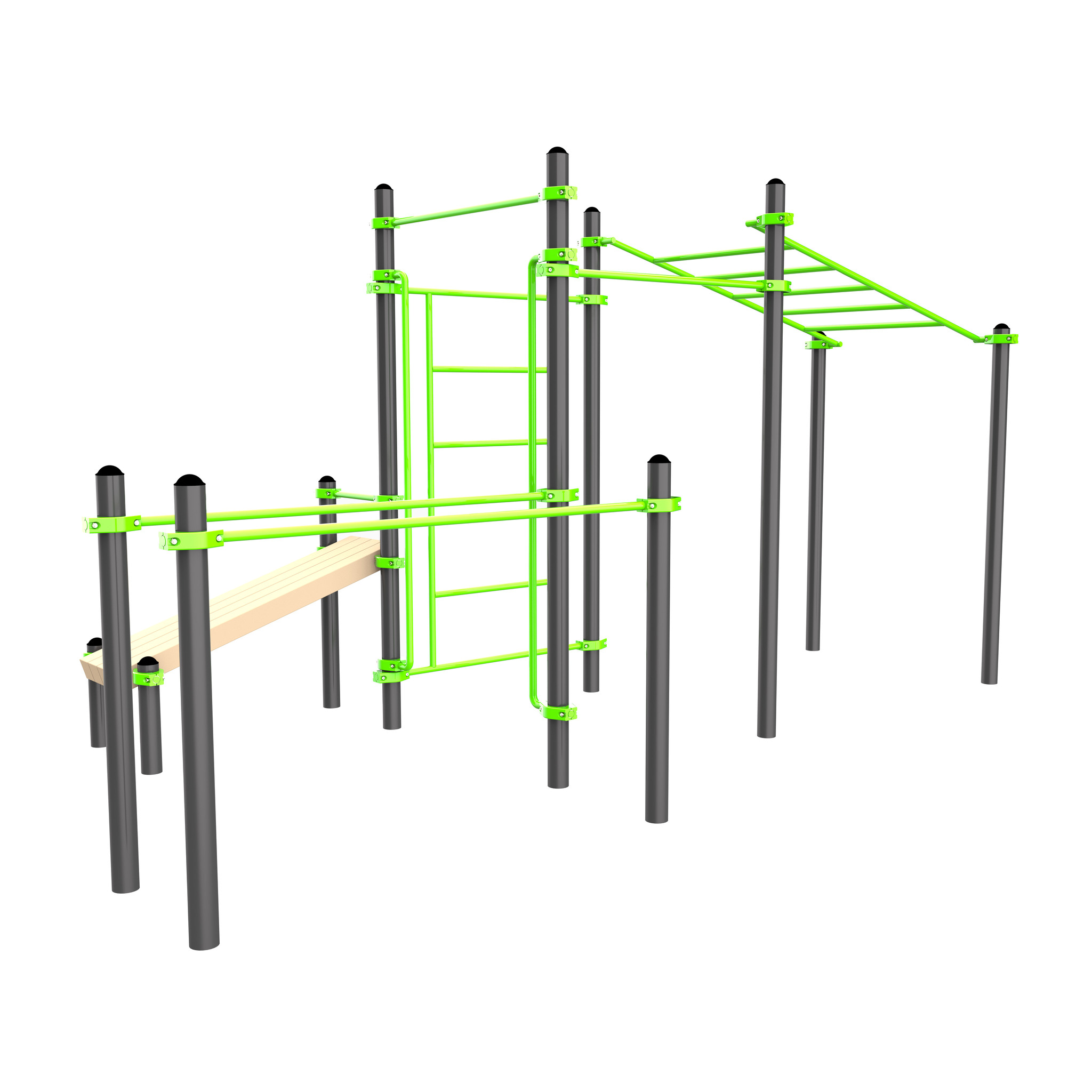 Уличный воркаут-комплекс W337 ZAVODSPORTA* предназначен для установки на уличных спортивных площадках с учетом интенсивной эксплуатации в разных климатических условиях.