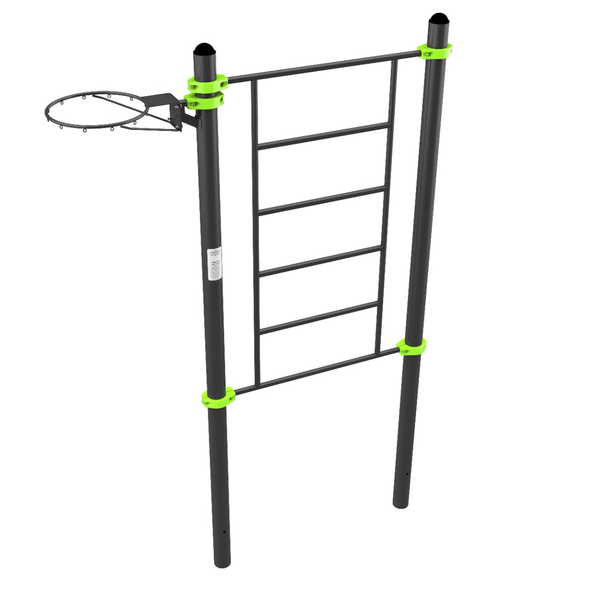 Уличный гимнастический снаряд (шведская стенка) с баскетбольным кольцом ZAVODSPORTA* предназначен для установки на уличных спортивных площадках с учетом интенсивной эксплуатации в разных климатических условиях.