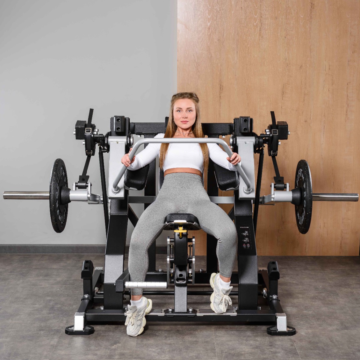 Система перемещения нагрузки обеспечивает равномерное распределение усилия на протяжении всей траектории движения рычагов, поддерживая устойчивое напряжение мышц в каждой фазе упражнения.