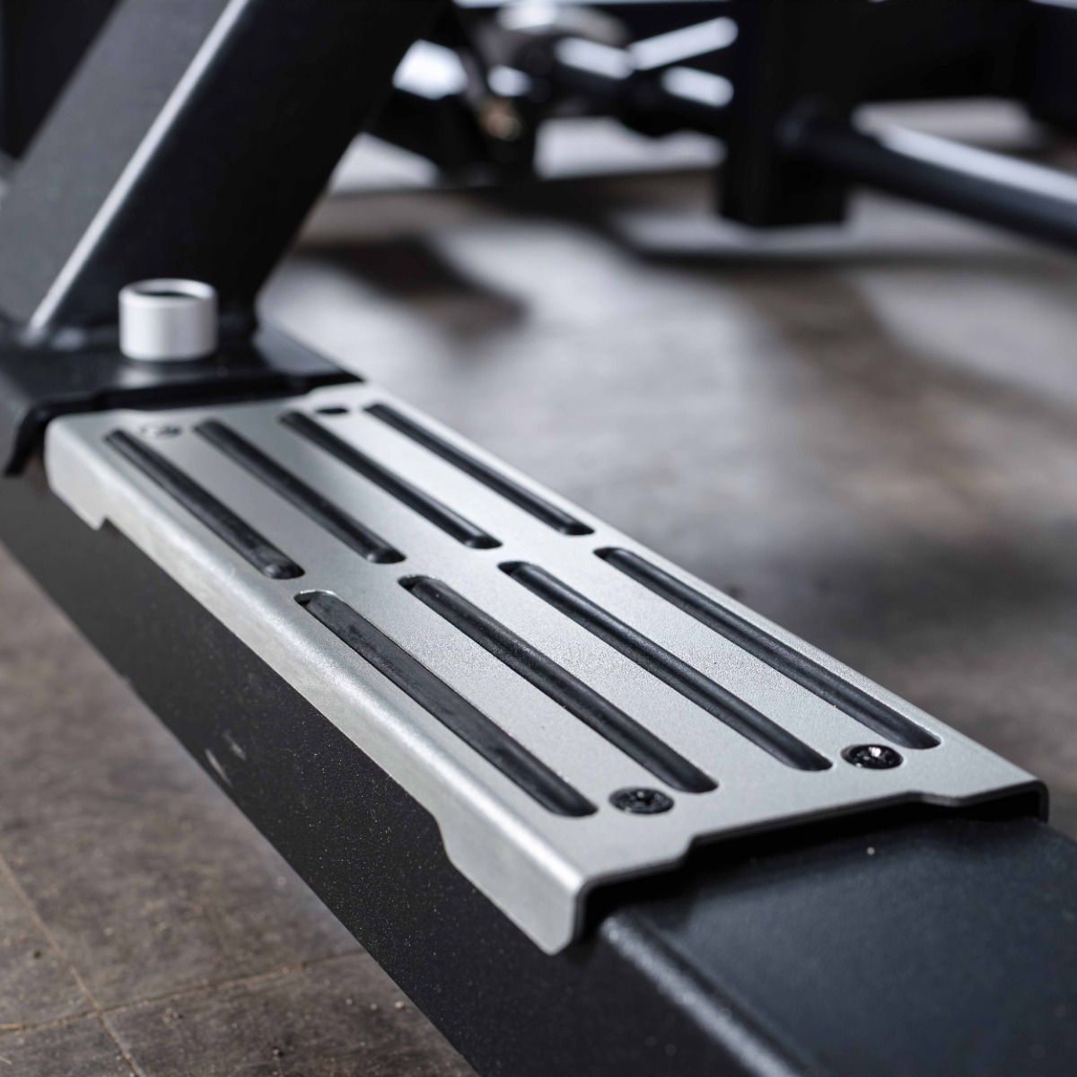Рама тренажера в участках соприкосновения со стопами пользователя оборудована декоративно-защитными накладками 245×90 мм из хромированного листового металла с антискользящими прорезиненными вырезами, обеспечивающими надёжное сцепление и устойчивость в исходном положении.