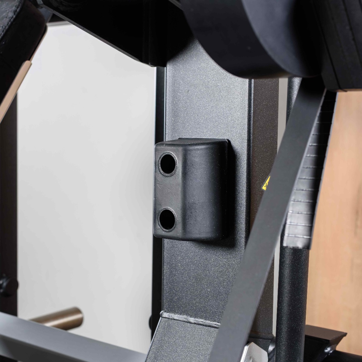 Накопители на подвижных рычагах оборудованы резиновыми отбойниками конической формы для предотвращения соприкосновения дисков с рамой тренажера и амортизации ударной нагрузки при их установке.
